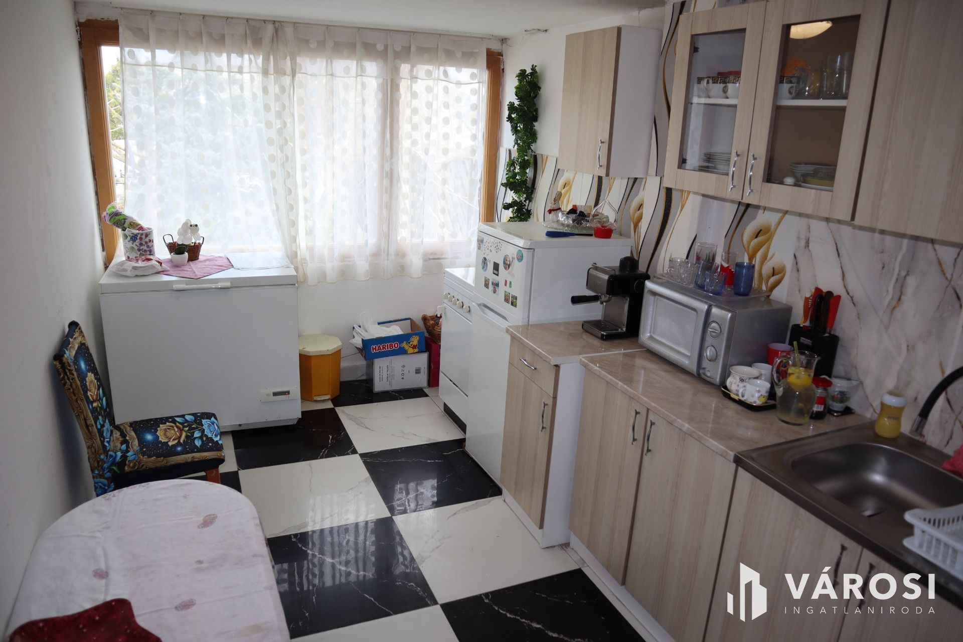 A másik külön bejáratú lakóegységben egy amerikai konyhás nappali, két hálószoba és egy zuhanyzós fürdőszoba található. Itt még az eredeti fa nyílászárók vannak beépítve. Így a házban összességében 4 tágas szoba, 2 világos nappali és 2 fürdőszoba található, ami tökéletesen szolgálja egy nagyobb család igényeit is, vagy akár üzleti célú bérbeadásra is alkalmas.