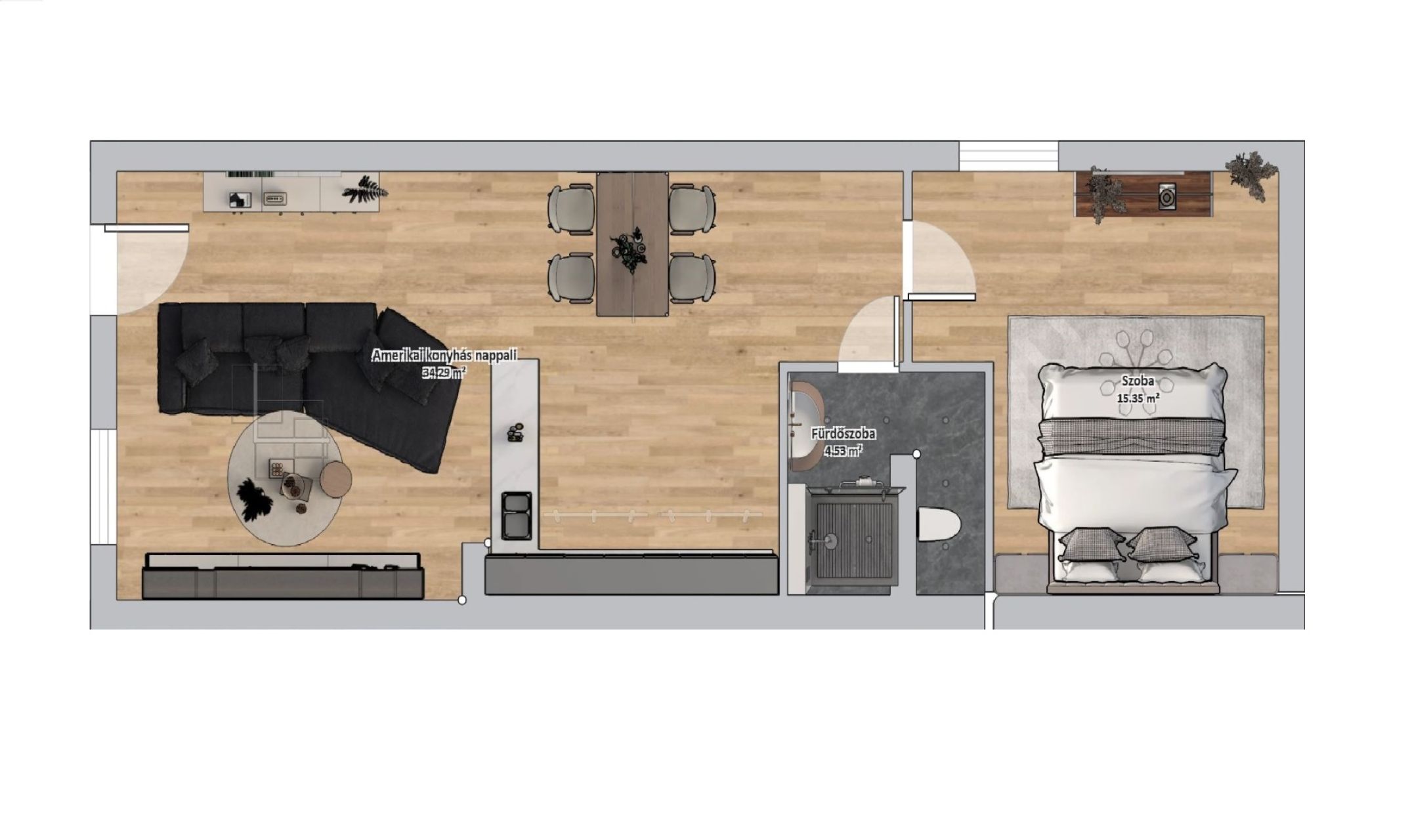 -amerikai konyhás nappali + 1 szoba