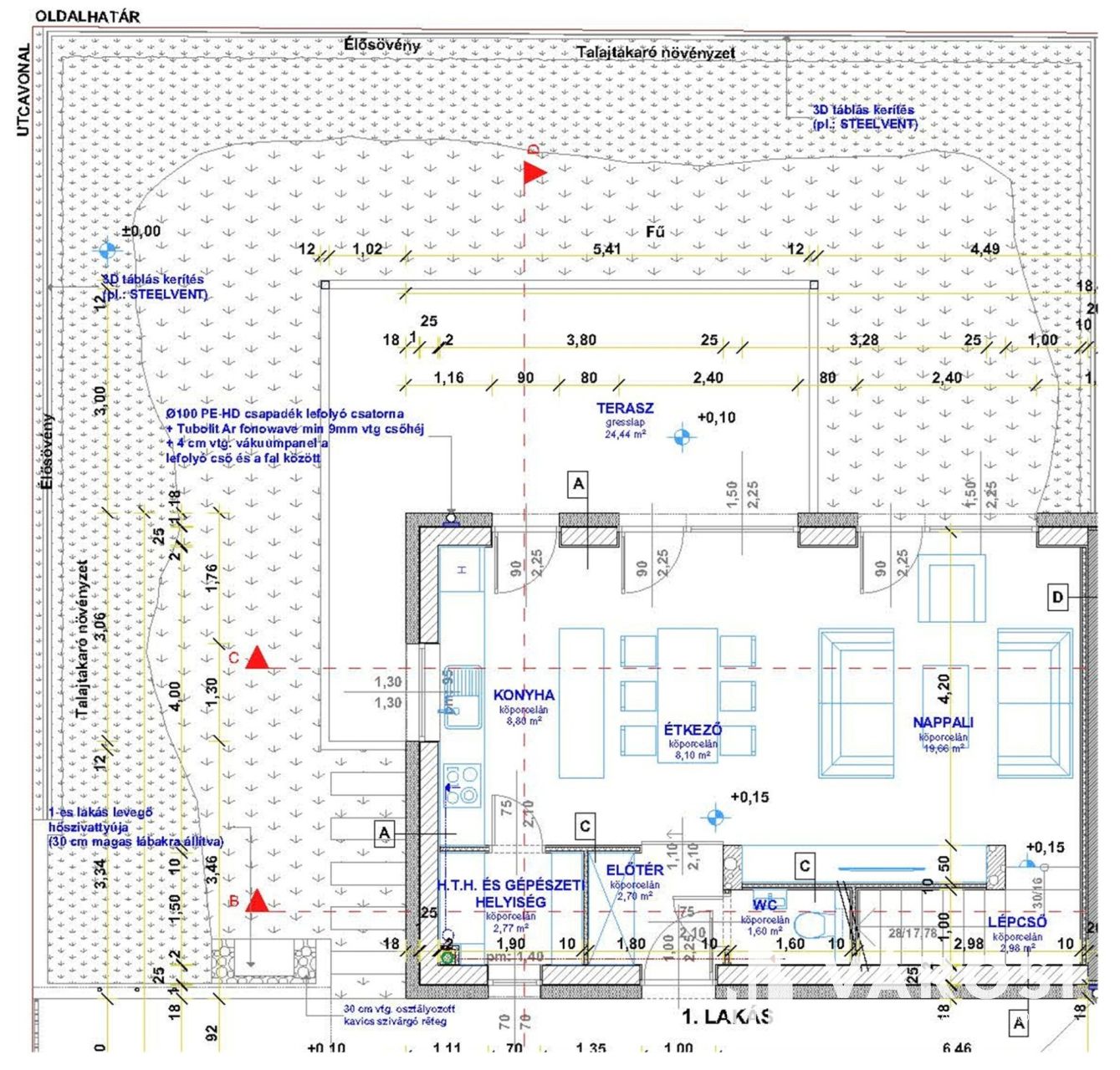 -Alapterület: 87,73 m² lakótér + 24,44 m² terasz + 120 m² saját kertrész
