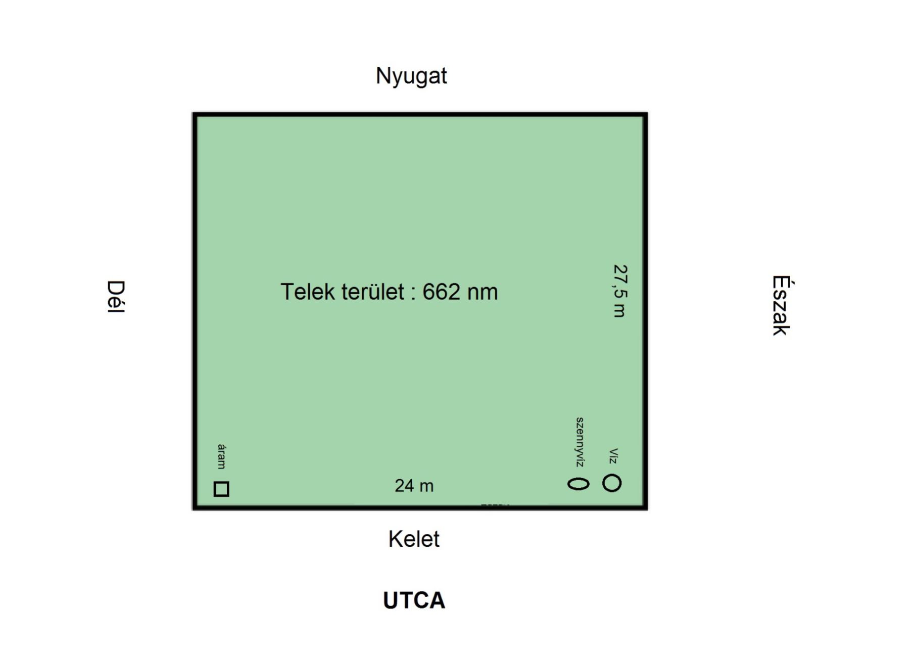 - közművek közül : áram (32A), víz, csatorna telken belül, gáz az utcában,