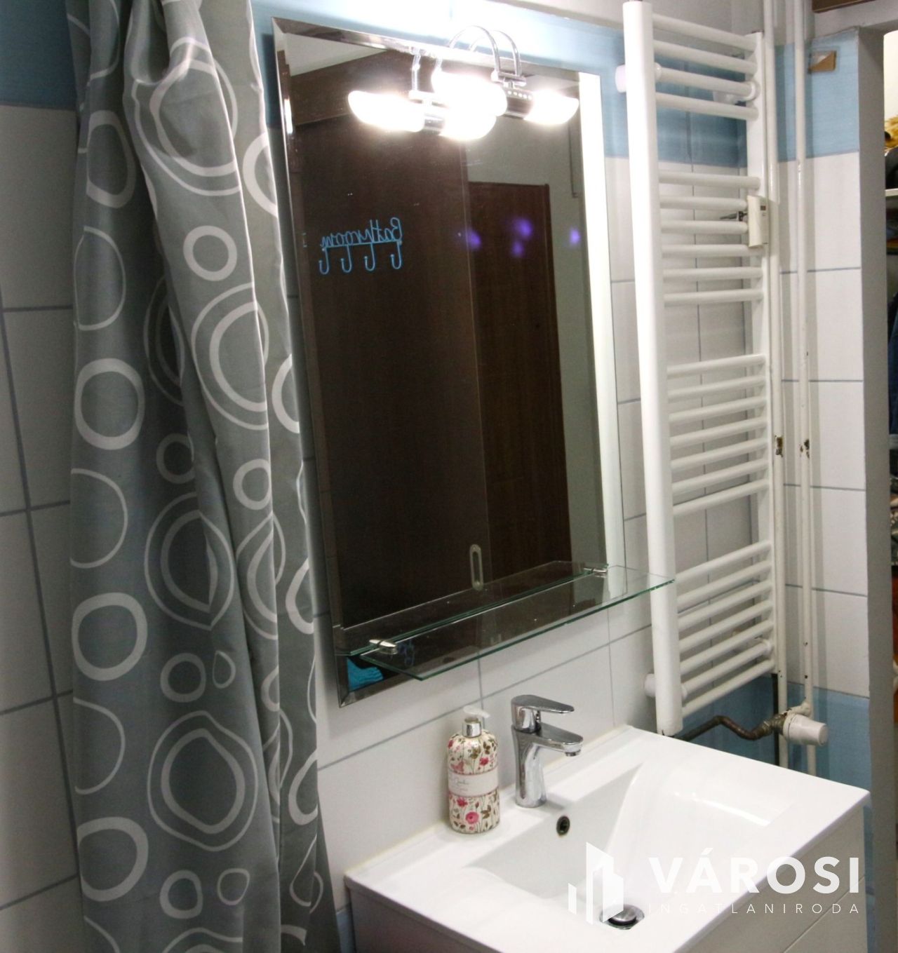 A fürdőszoba is teljesen átalakult, praktikus okokból tolóajtós megoldással.