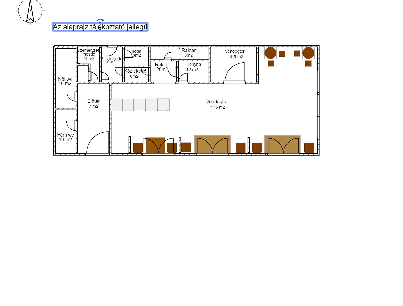 Több kiszolgáló helyiség tartozik az ingatlanhoz többek közt konyha, iroda, személyzeti mosdó, vendég mosdók.