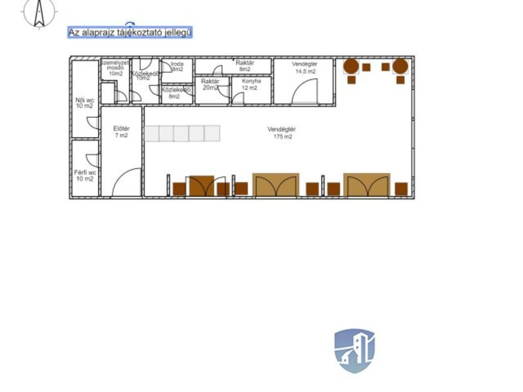 Több kiszolgáló helyiség tartozik az ingatlanhoz többek közt konyha, iroda, személyzeti mosdó, vendég mosdók.