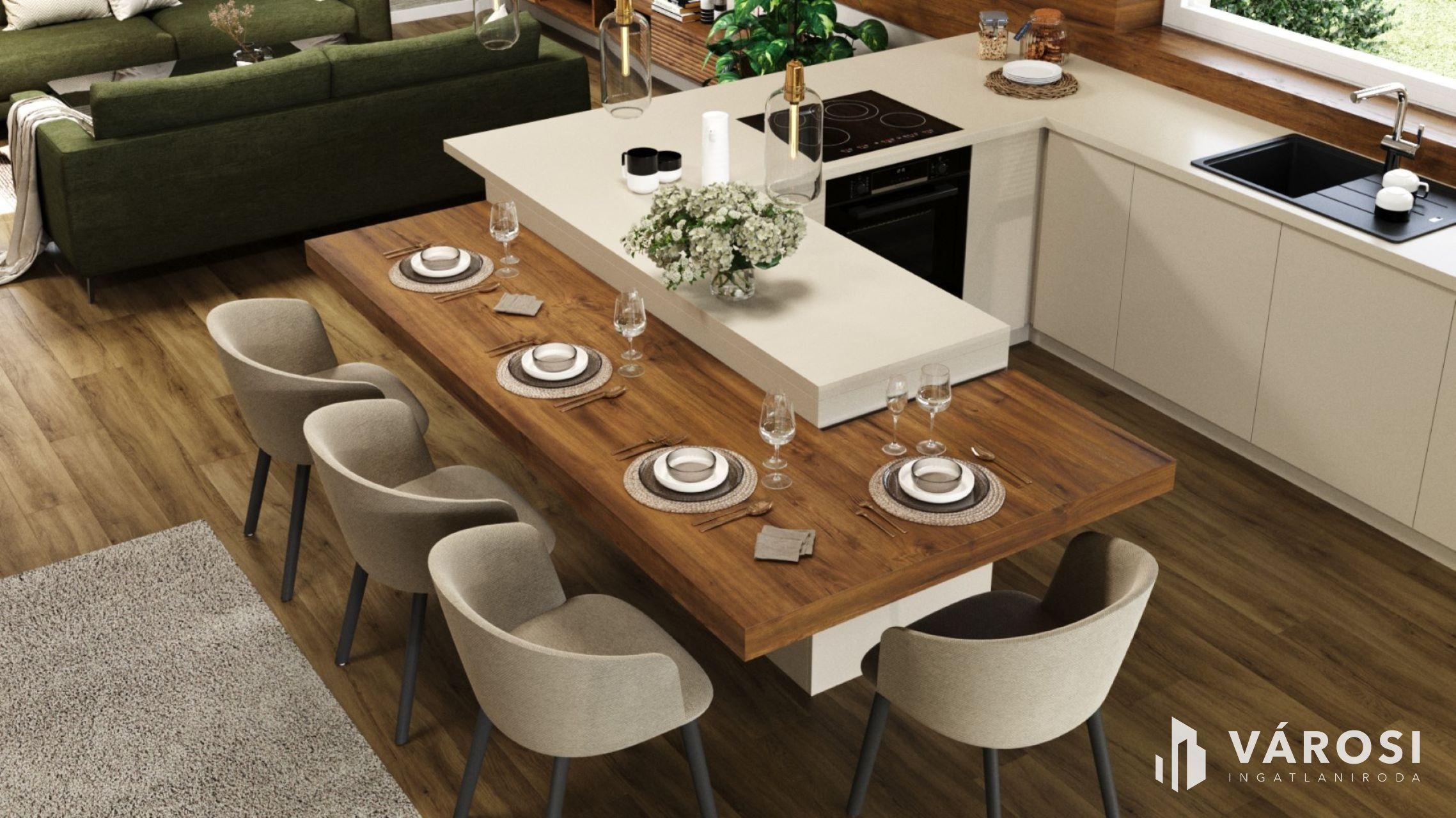 A hirdetésben szereplő látványtervek jól mutatják, milyen otthonosan berendezhető, jól élhető lakás lesz belőle.