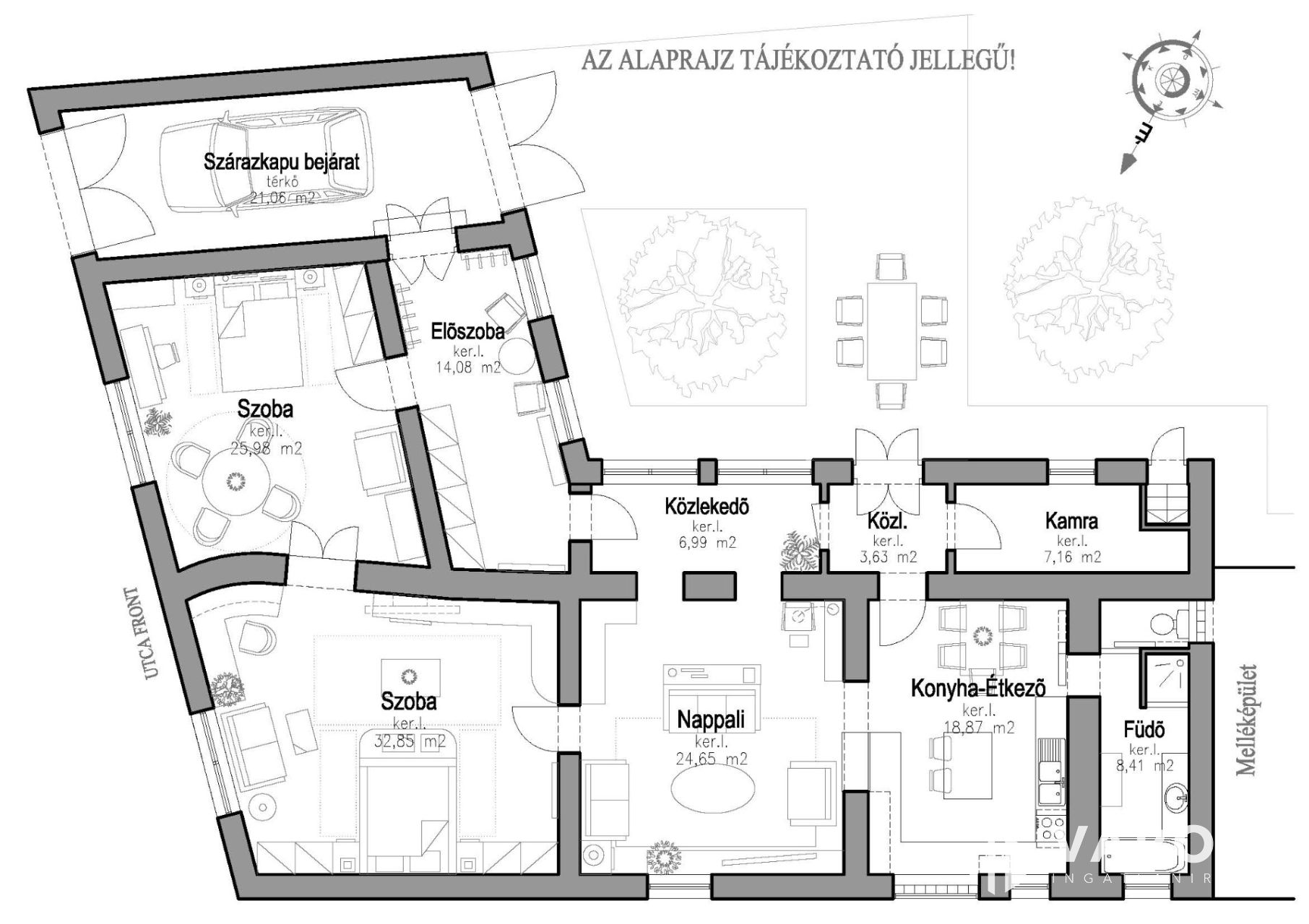 - Parkosított udvar, melléképületek, fedett gépkocsi beálló
