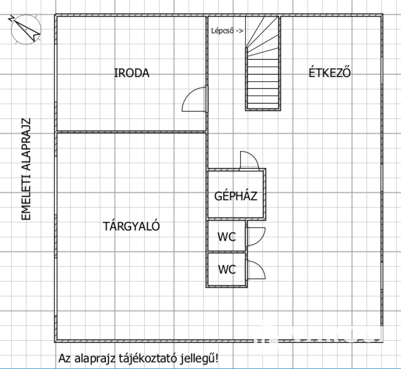 A földszinten konyha, hűtőkamra, raktár, tusoló, öltöző és 2db WC is van. Az emeleten iroda, bemutató/tárgyaló terem, étkező, közlekedő a légtechnikai gépház és szintén 2 db WC is található.