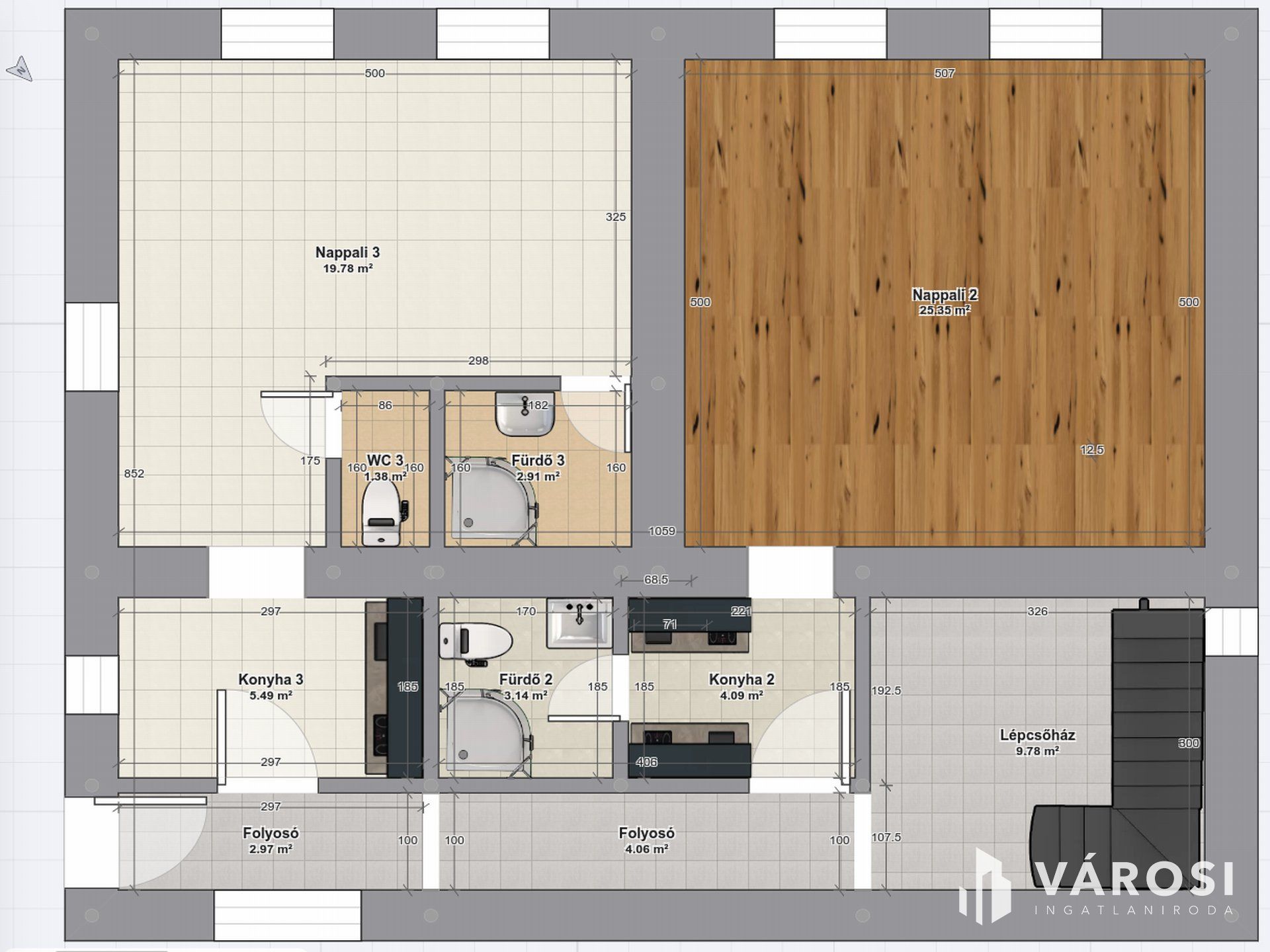 Összesen (bruttó): 292,5 m2