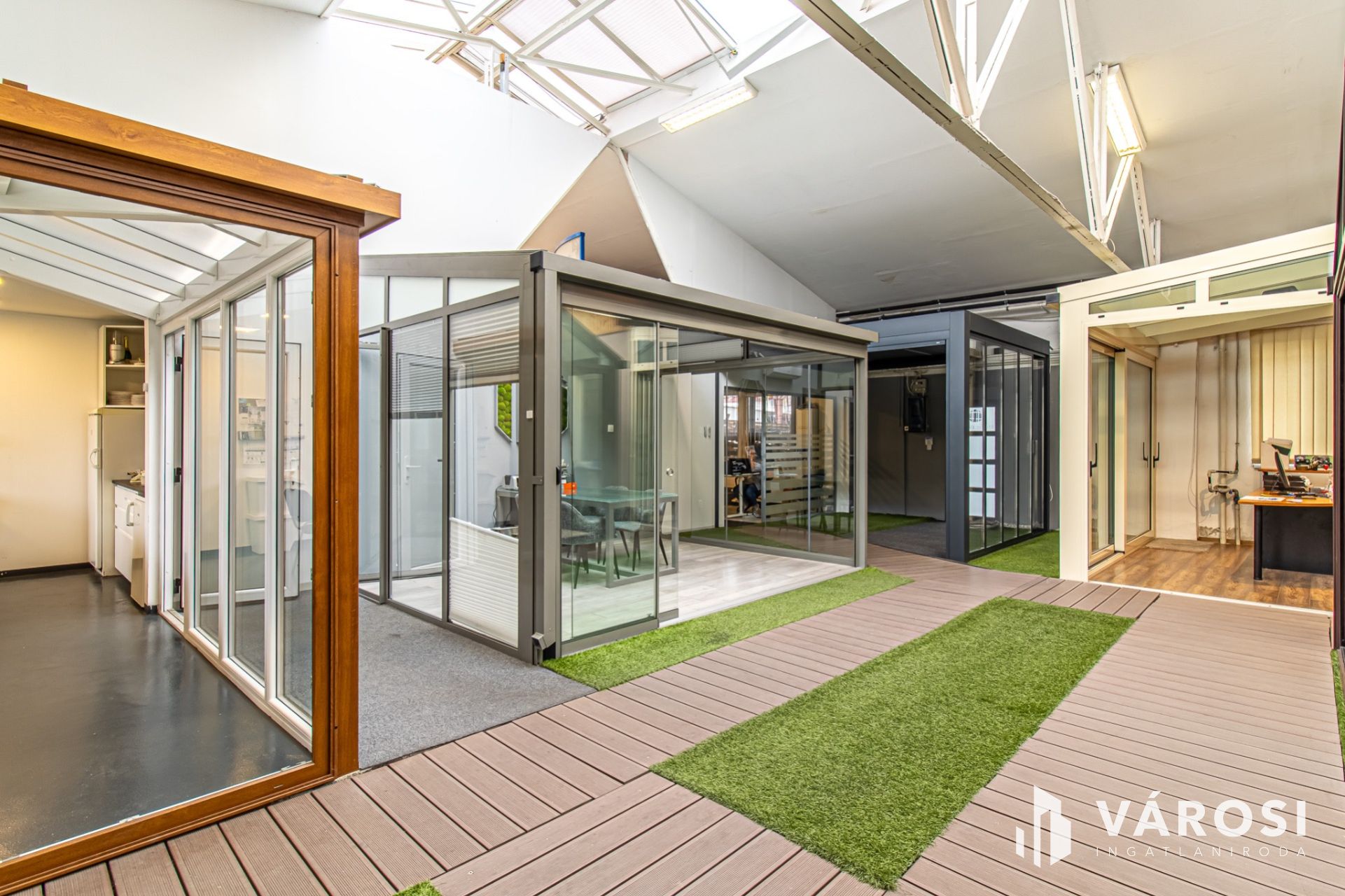 Kapuk: négy egység motoros, szekcionált garázskapun keresztül elérhető, a bemutatóterem külön bejárattal rendelkezik