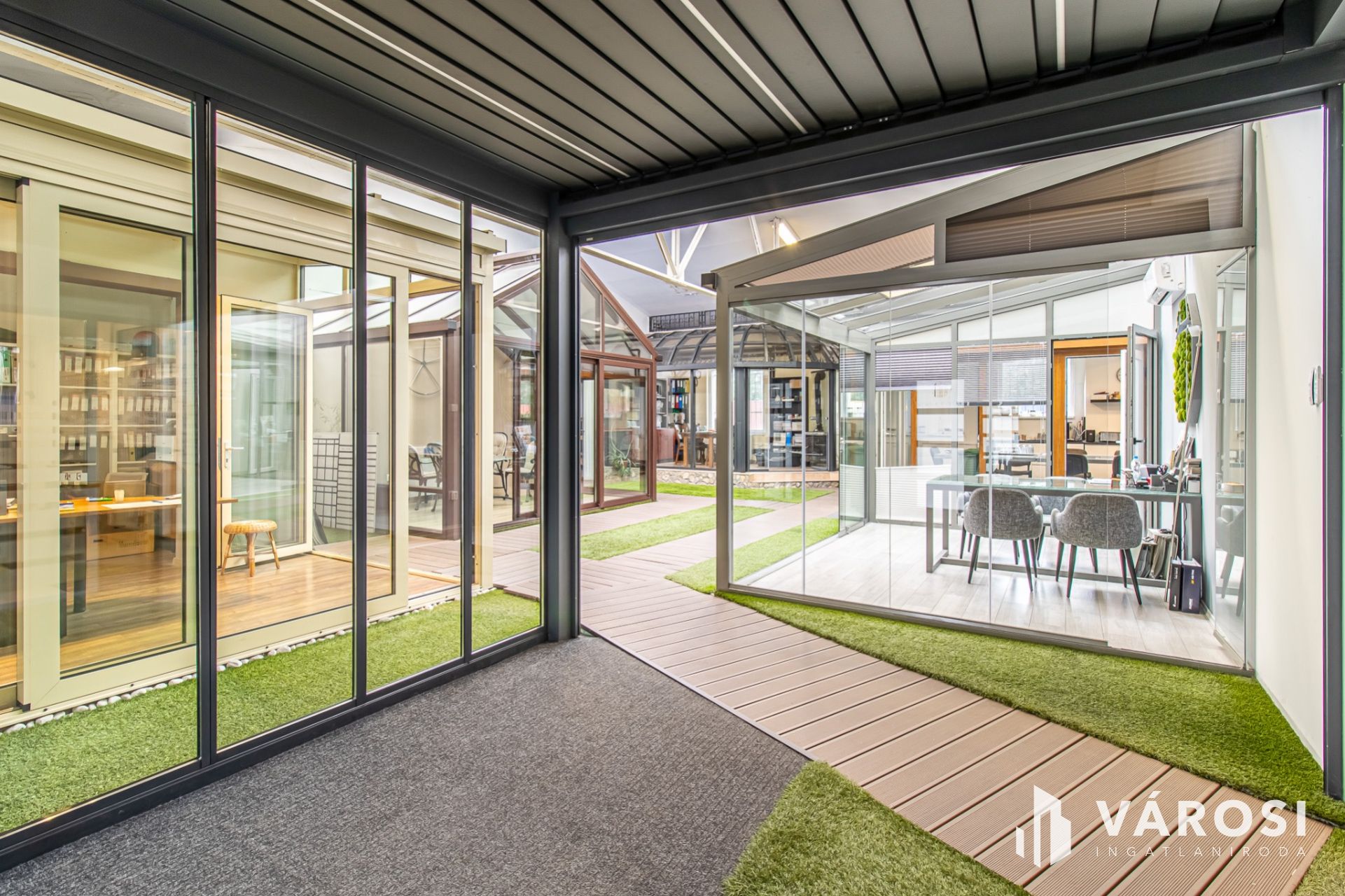 Rugalmas kialakítás: öt különálló egységre osztható (3 nagyobb, 2 kisebb), belső átjárással