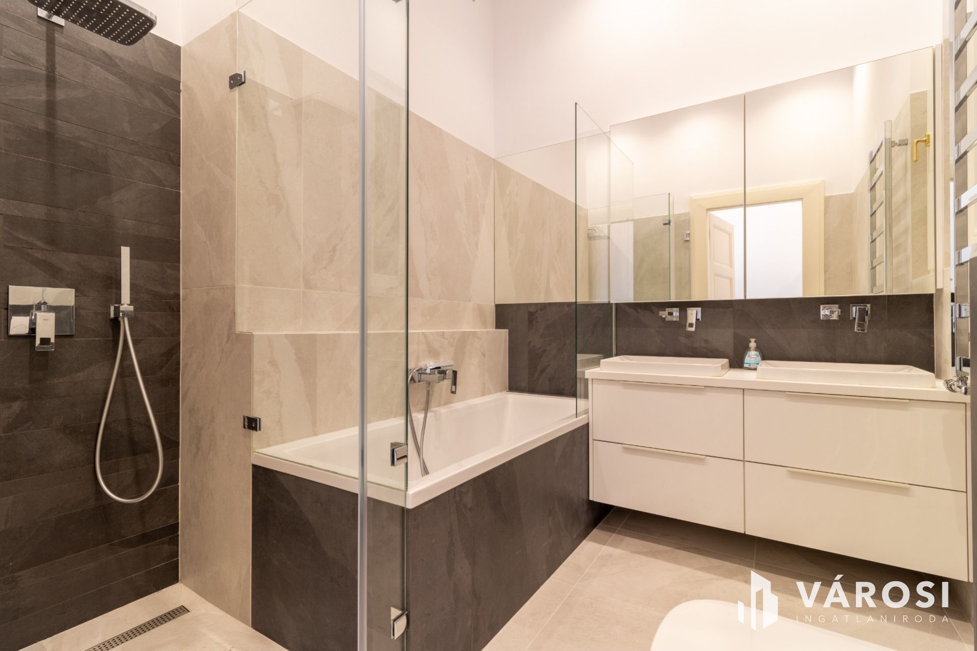 -Elegáns fürdőszoba káddal és zuhanyzóval