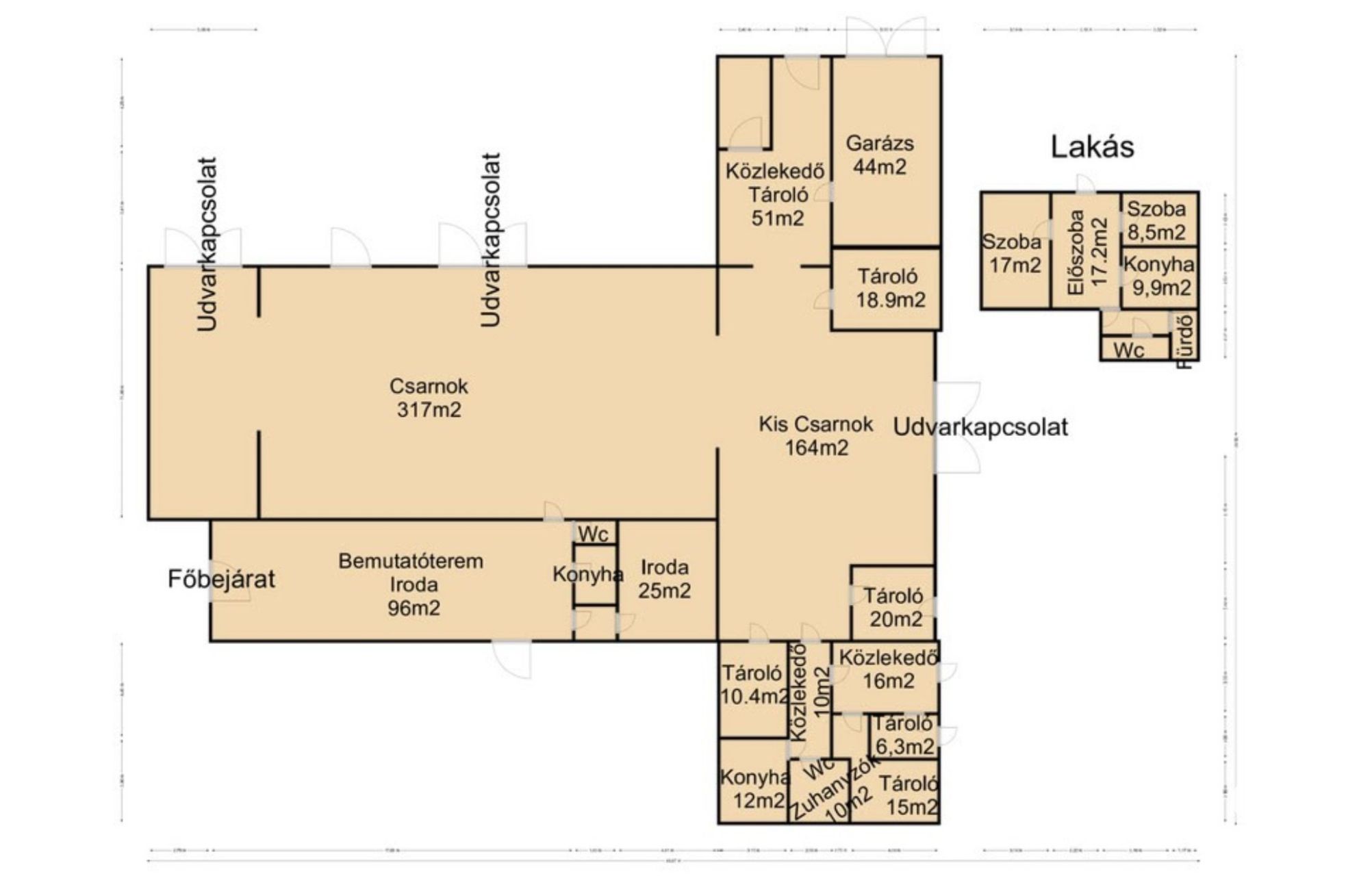 - Belső tér : 900 m² terület áll rendelkezésre, földszinti elhelyezkedéssel, mely átlagos állapotú és azonnal használatba vehető.