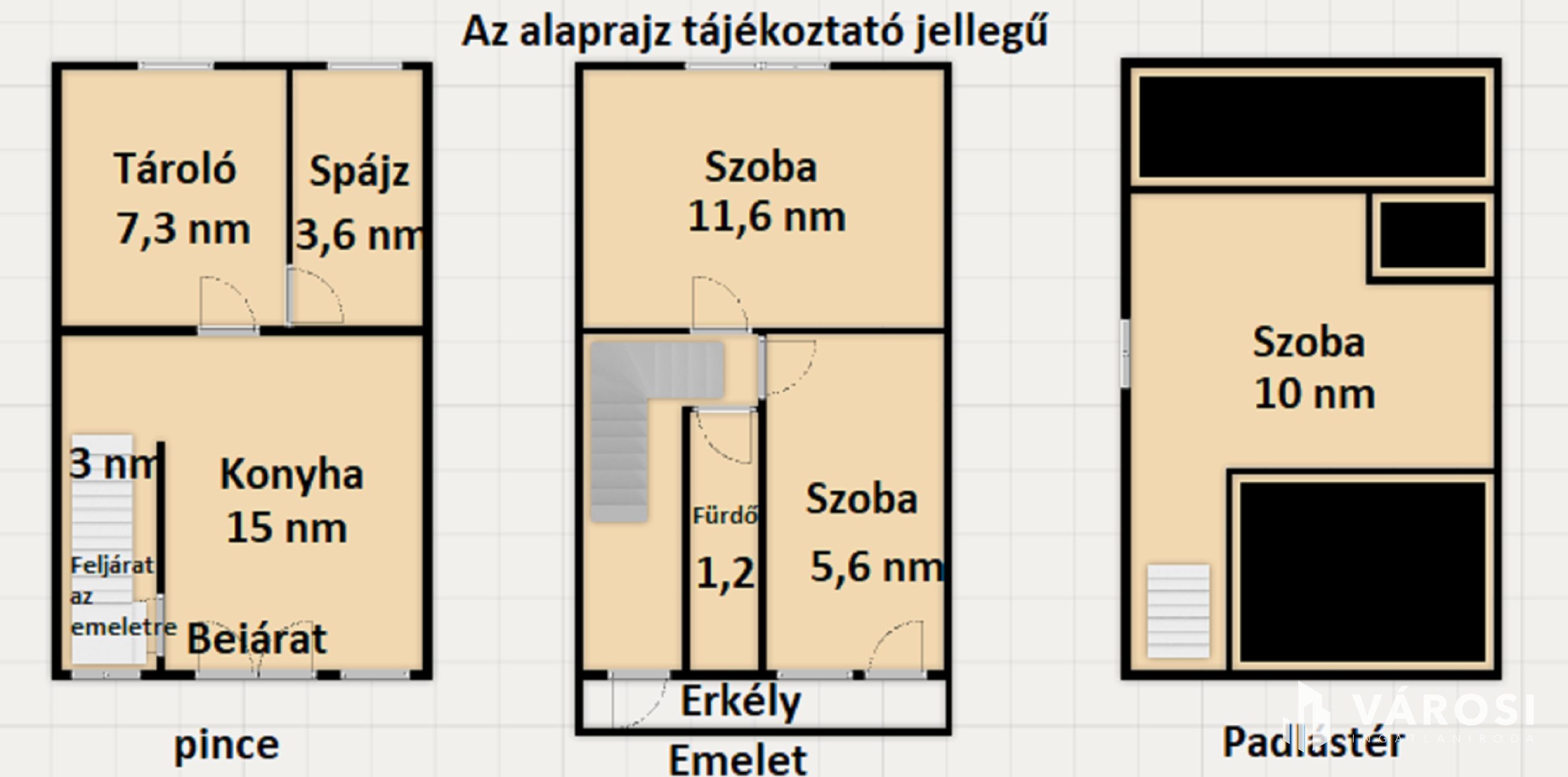 Az épületek 3 szintre bonthatóak. Az alsó szint a pince szint, egyik épületben itt található a konyha és kamra rész, a másik ingatlannál pedig szerszám tárolóként és borospinceként funkcionál. A középső szint (emeleti rész) az egyik épületnél kettő szoba + zuhanyzó, míg a másikba egy szoba, egy konyha + WC található. A tetőtér az egyiknél be van építve szobának, a másiknál jelenleg raktár, de egyszerűen itt is kialakítható egy szoba.