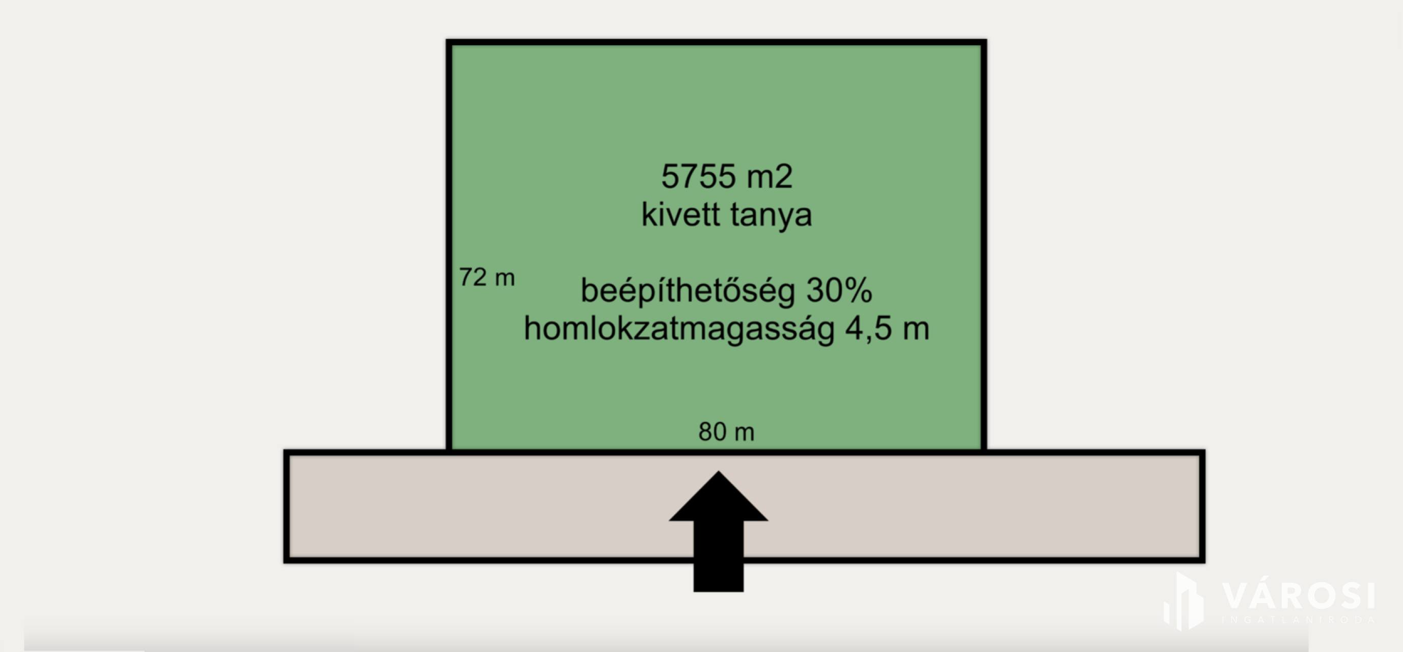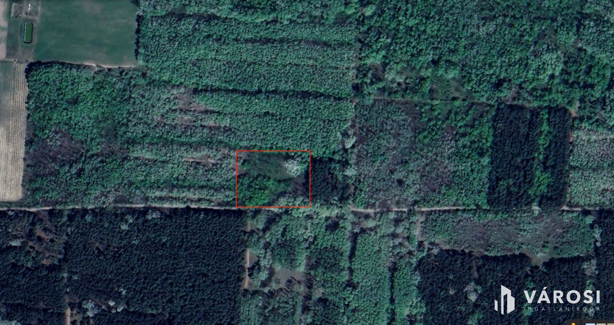 A fenyőerdővel körülvett telek mérete 5755 m2, amely maximális beépíthetősége 30%, lakóépület építése esetén 4,5 m a maximális homlokzat magasság. Az ingatlanra a villany bevezetésre került.