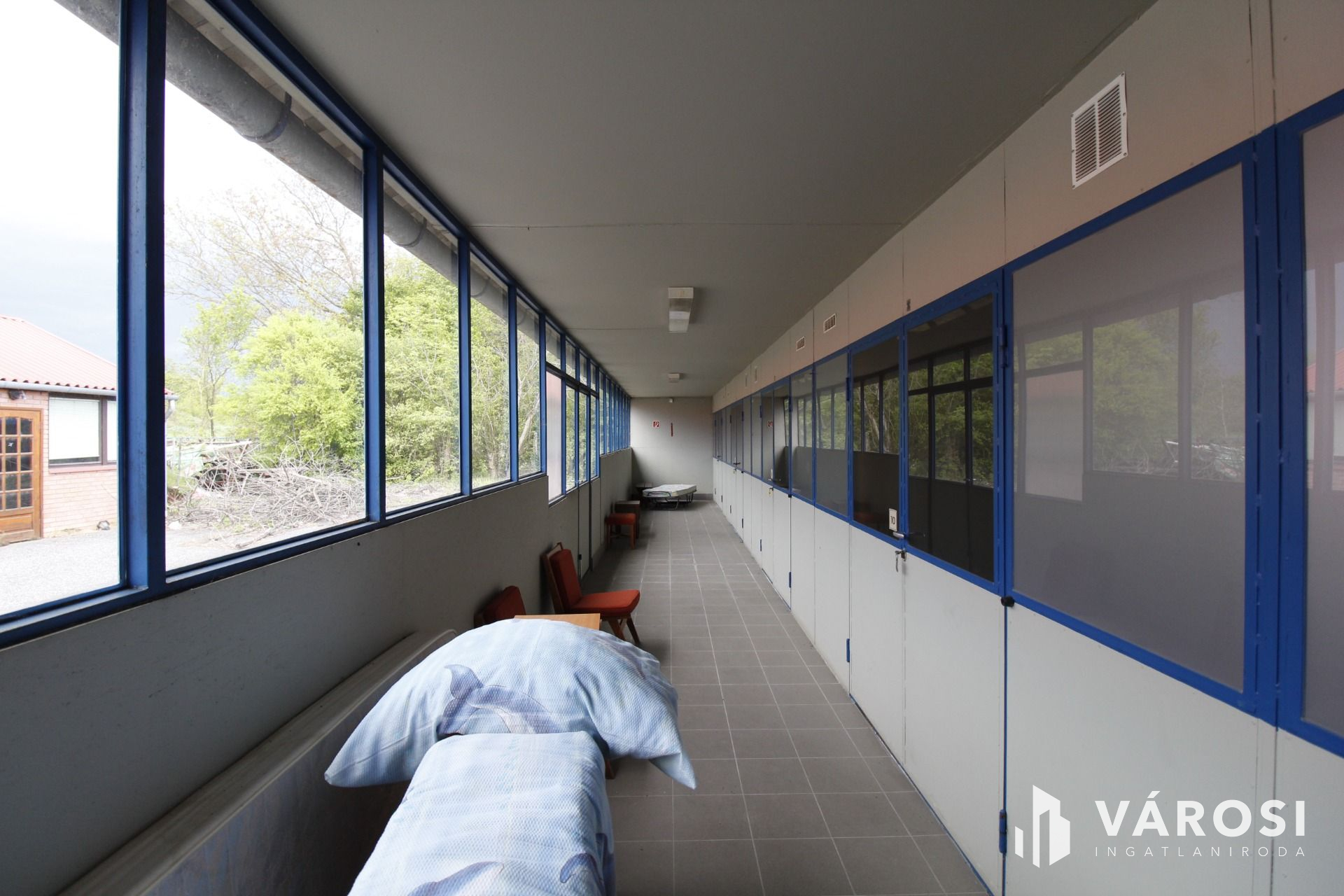 A szobák 2,3 illetve 4 ágyas elrendezéssel lettek kialakítva, több mint 100 ember elszállásolására alkalmasak. Az épületegyüttesben 150 nm nagyságú közösségi tér, étkező, konyha, vizesblokkok, és egy söröző is helyet kapott. Kialakításra került egy privát lakrész, amelyben vagy az üzemeltető tartózkodhat, vagy akár további szobák is kialakíthatóak belőle. A szobák fűtését elektromosan lehet megoldani, illetve az épületekben a gáz is megtalálható, így kialakítás után akár gáz üzemű fűtéssel is ellathatóak a helyiségek. A belső falak könnyűszerkezetesek, így bármilyen belső átalakítás könnyen elvégezhető!