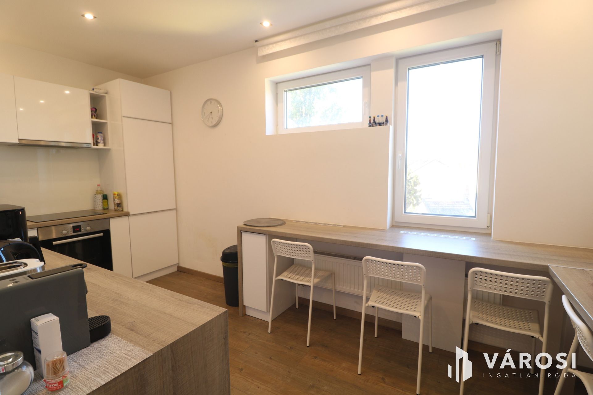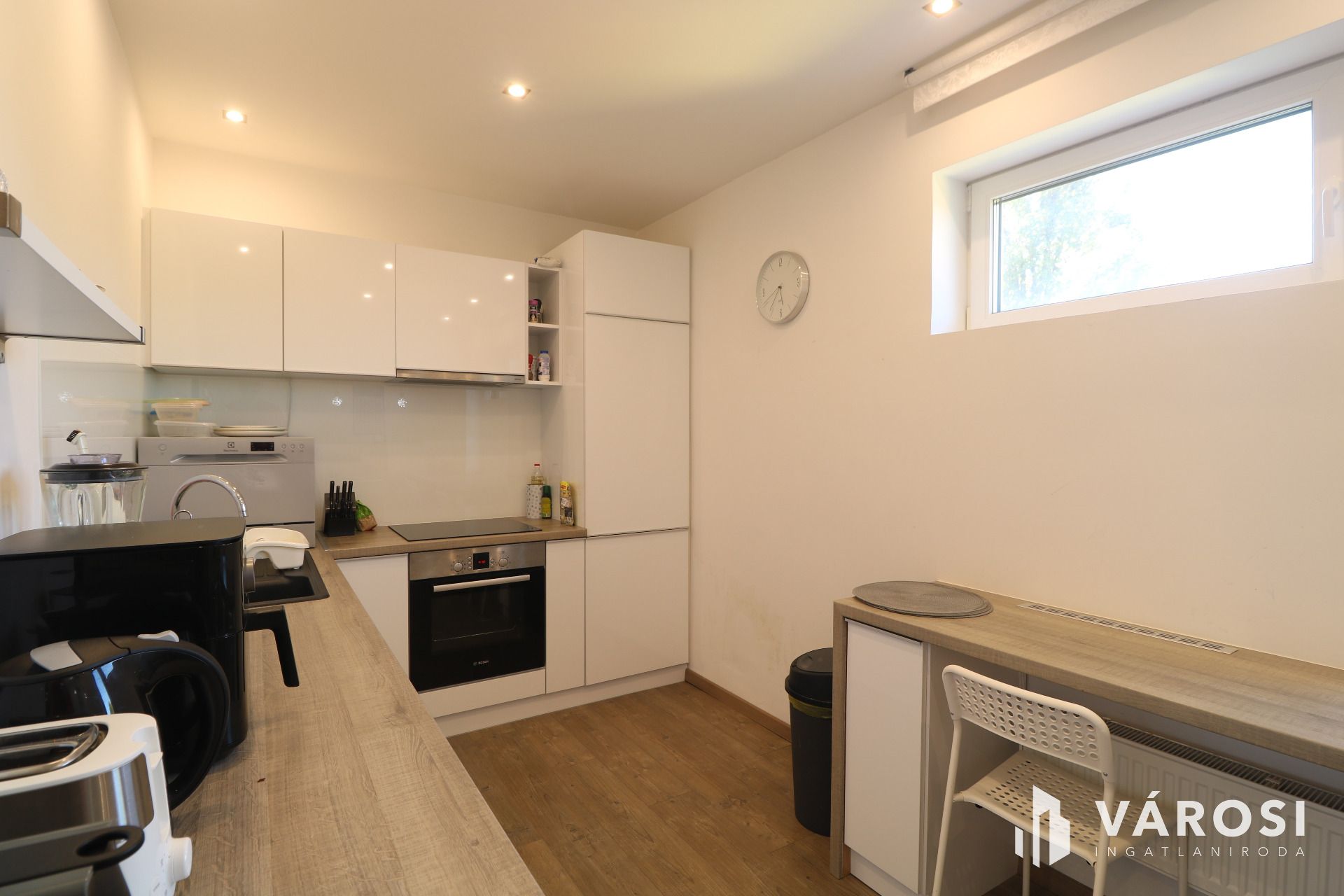 - Egyedi konyha melyben beépített konyhagépek kaptak helyt.
