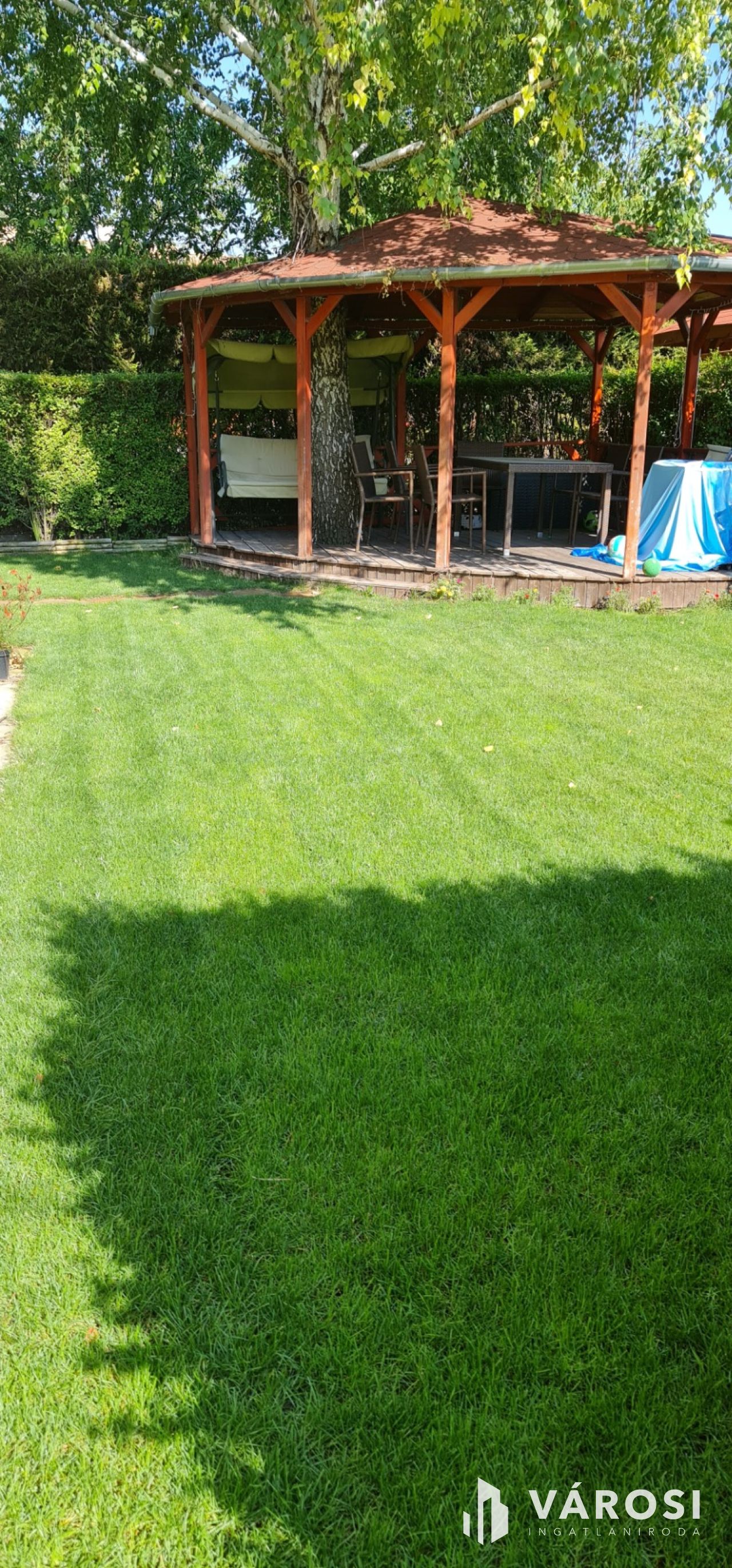 A földszinti terasz és igényes szaletli ideális helyszín a pihenésre vagy a baráti összejövetelekre, míg a kerti grillezőhely tökéletes a nyári sütögetésekhez. Az automata öntözőrendszerrel ellátott kertben fúrt kút és egy gyönyörű kerti tó is található, amelyek tovább fokozzák az otthon nyújtotta kényelmet.