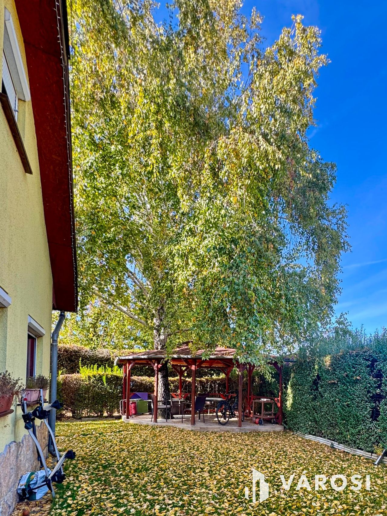 Az ingatlan továbbá elektromos garázskapuval és saját tárolóval rendelkezik. A melléképület és a beépített szekrények, illetve a gardrób további tárolási lehetőségeket biztosítanak. Az extra kényelmet a klíma és a riasztó rendszer garantálja.