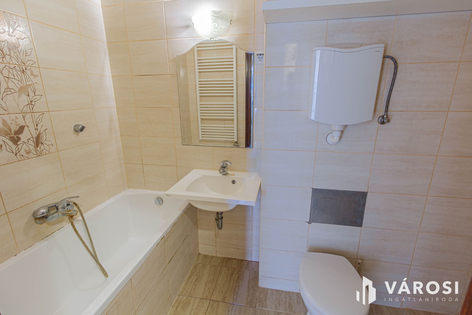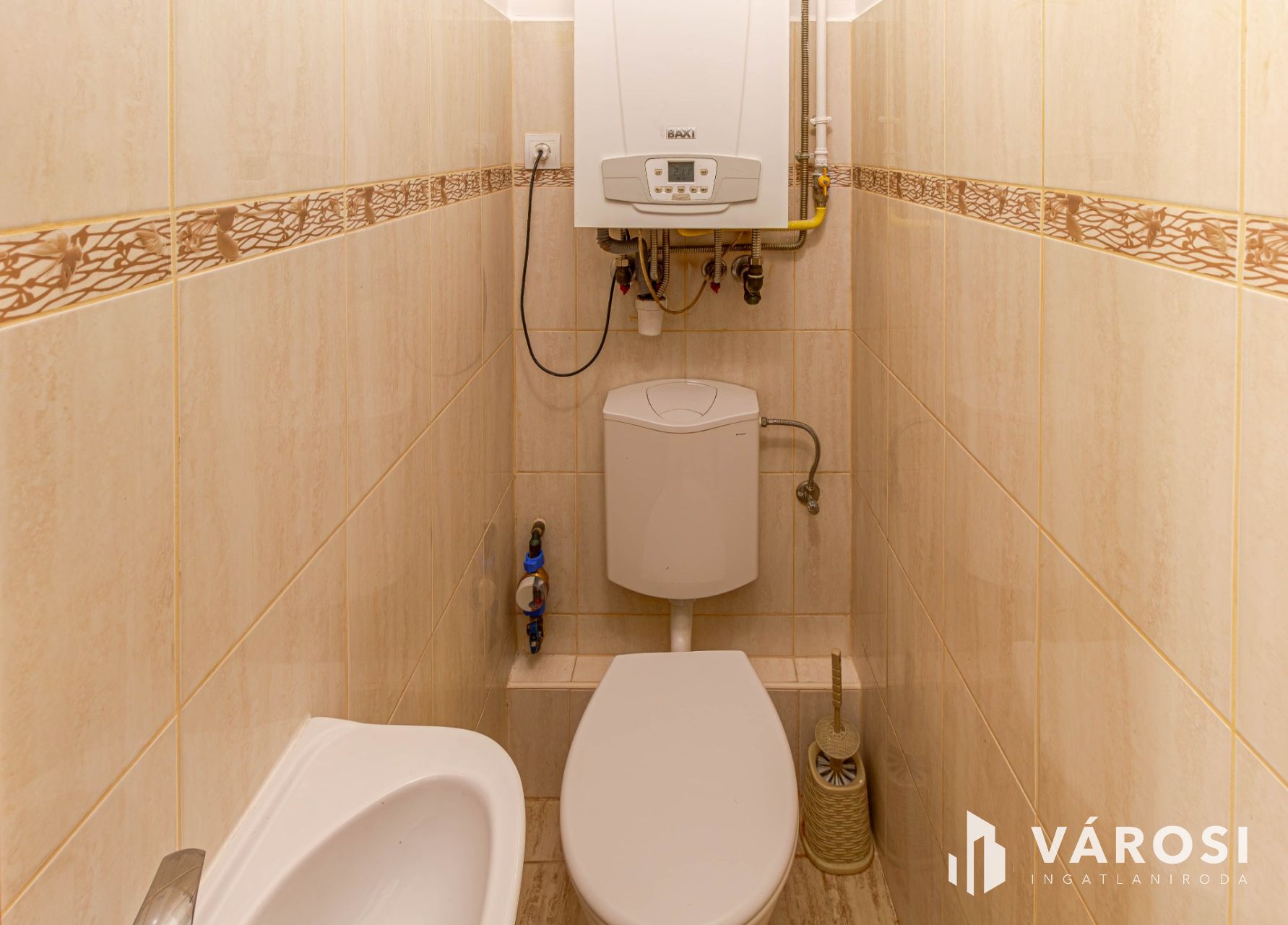 Praktikus fürdőszoba WC-vel + külön WC, ahol a kazán is helyet kapott, amely bő 2 éve lett felújítva.