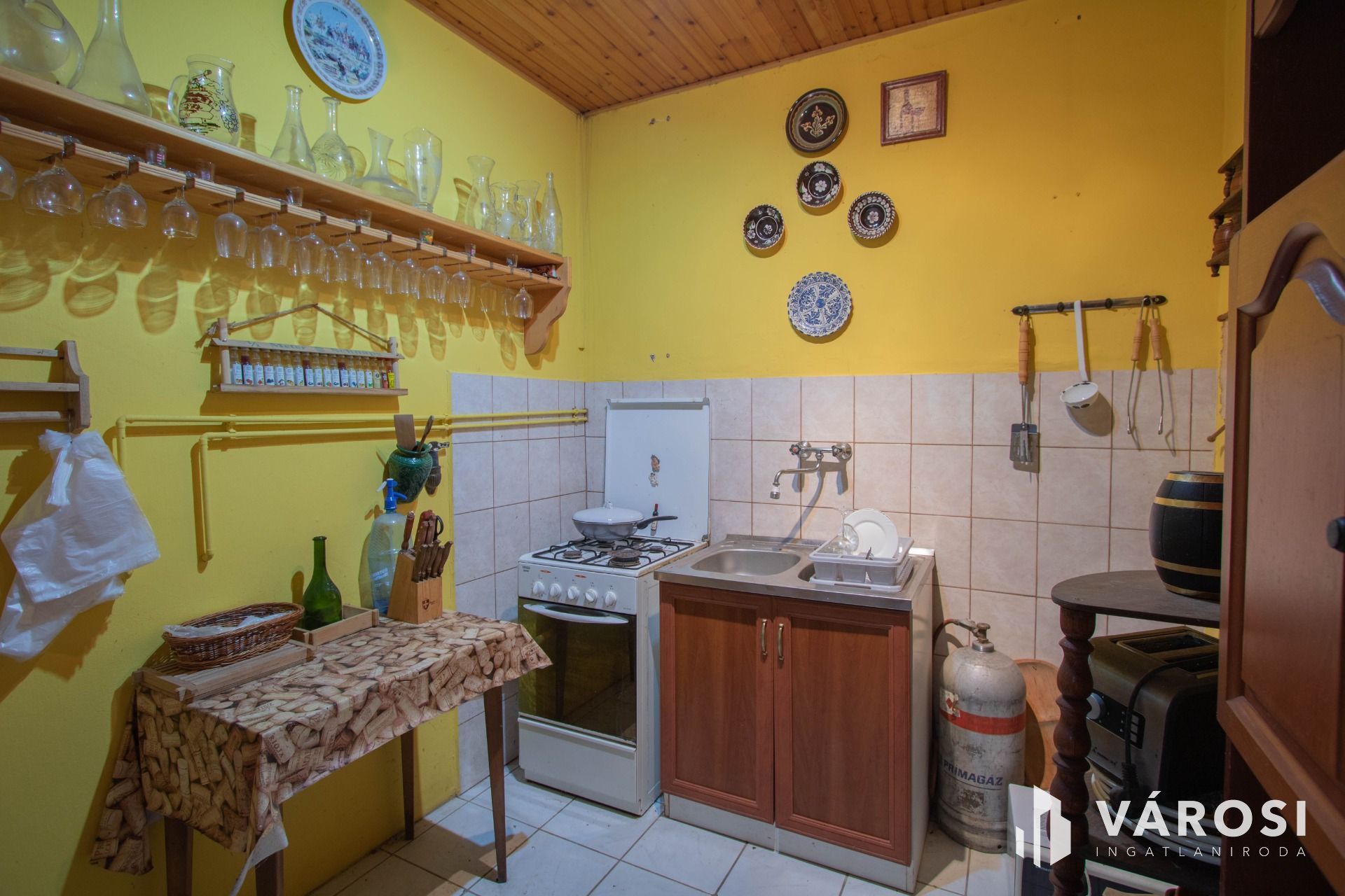 Jelenleg víz és villany is be van vezetve az ingatlanba, WC kialakítása szükséges. Egy hangulatos kis nappali, egy kisebb konyha és egy zuhanyzó rész található benne, na meg az elengedhetetlen prés, ami már csak dekor része az épületnek.