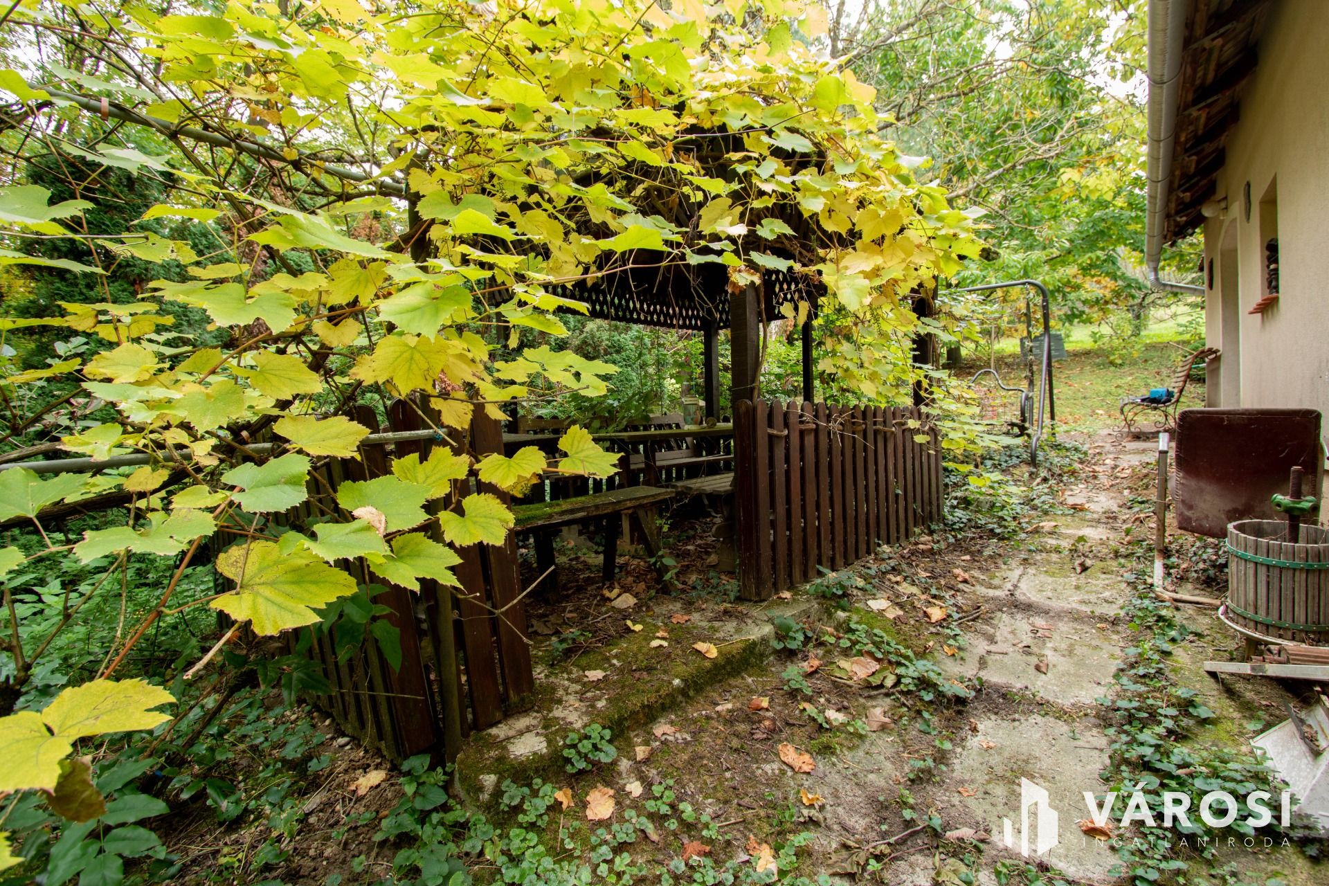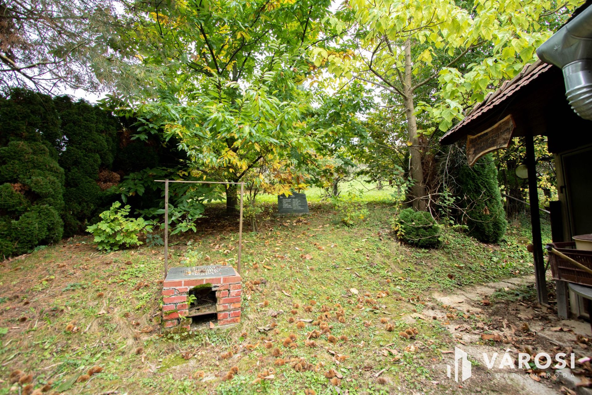 Az udvarban egy hangulatos kiülő, egy kisebb játszótér, kerti WC, rengeteg gyümölcsfa, közel 20 db termő almafa, 4 szelíd gesztenye, pár barackfa, füge, fenyves található. A terület végében meg egy kilátó, ahonnan ámulatos kilátás tárul elénk.