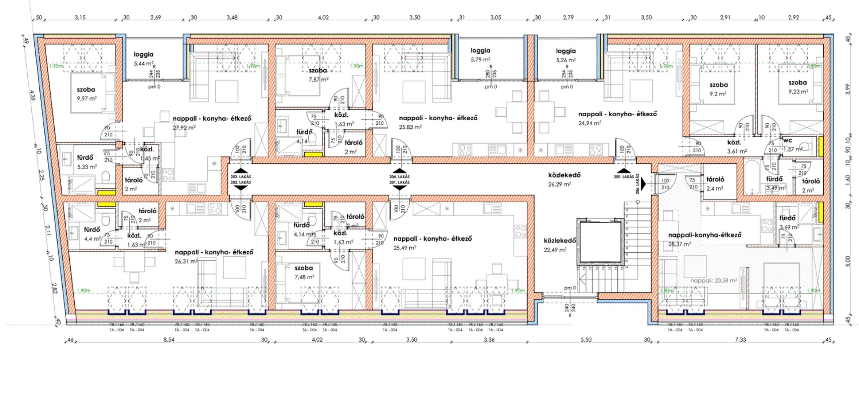 Makón, presztizs lokációval rendelkező - Makói fürdőtől 60 méterre, a Napfény Residenceben - a Páva utcában , Eladó egy most induló, tégla építésű, MÁSODIK EMELETI , 59,10 nm-es élettérrel rendelkező, amerikai konyha nappali plusz kettő szobás, loggiás, lakás (205.lakás).