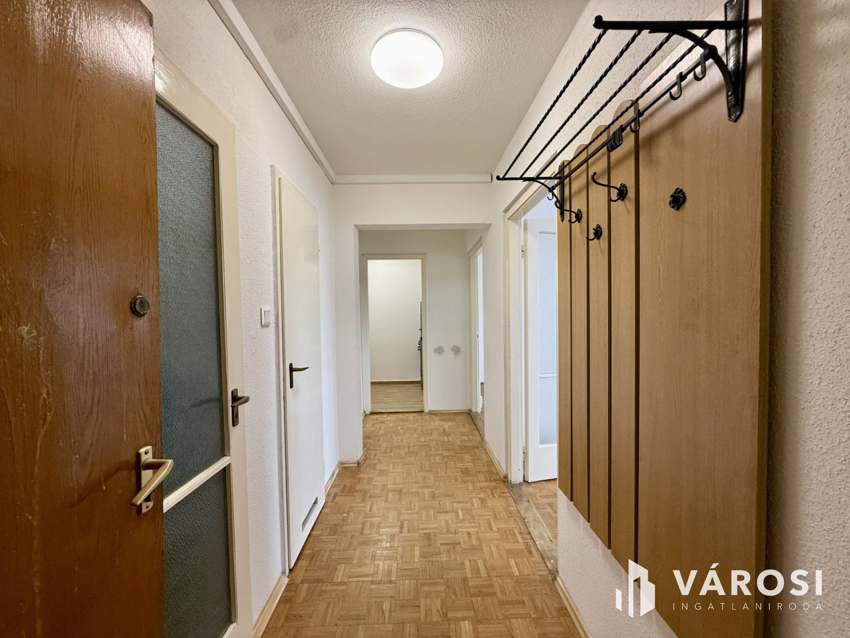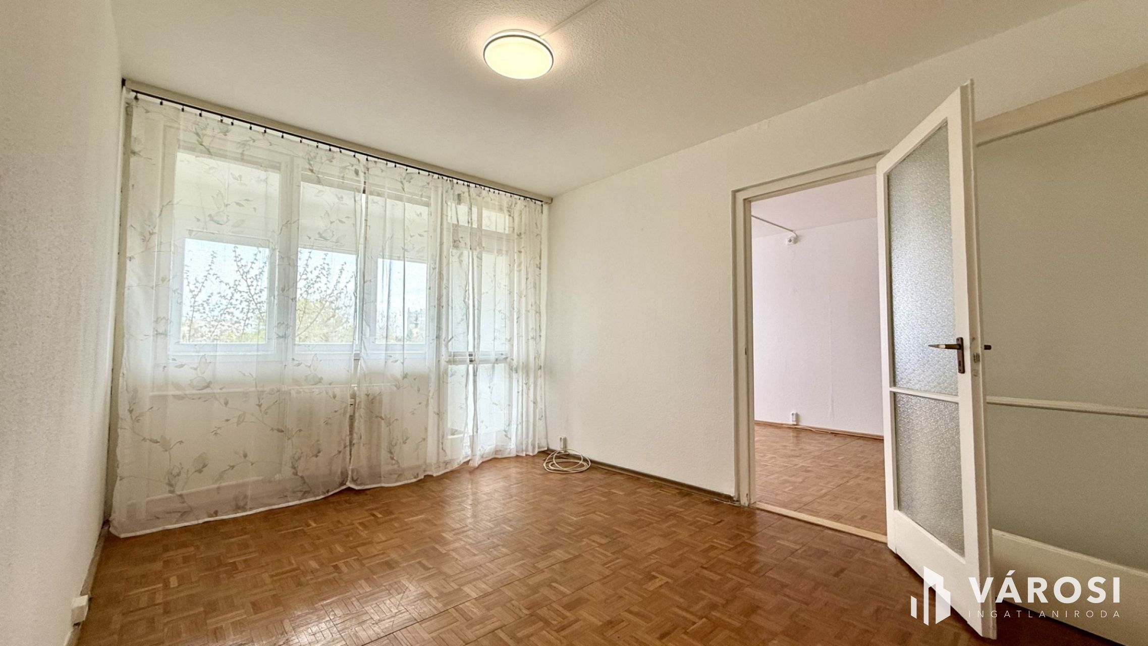 🪵 A parketta és a beltéri ajtók eredetiek, ami karaktert ad a lakásnak, és jól illik a fiatalos, otthonos hangulathoz.