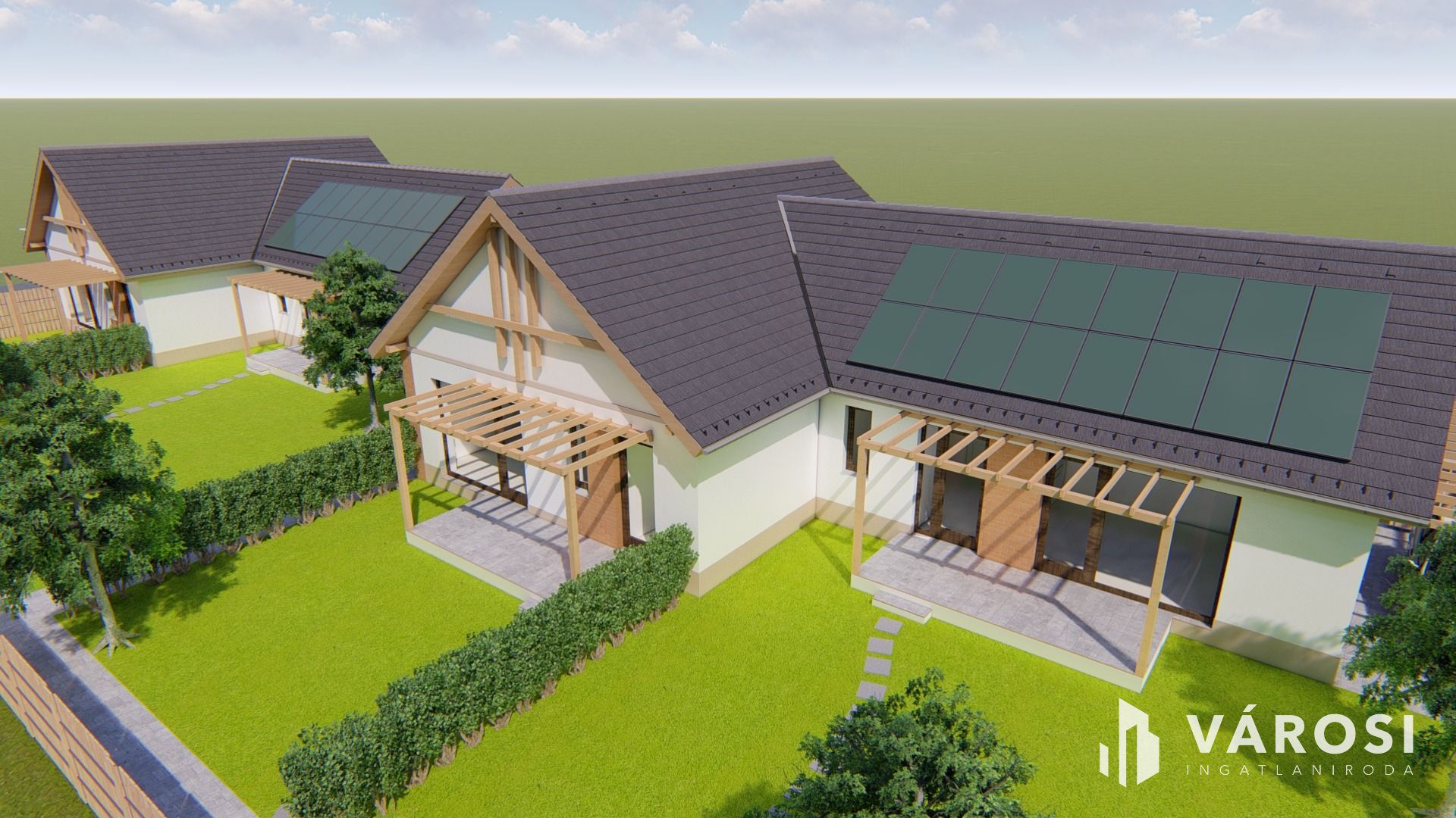 - A gépkocsi beállókhoz, illetve a teraszokhoz csatlakozva a két kocsibeállónál