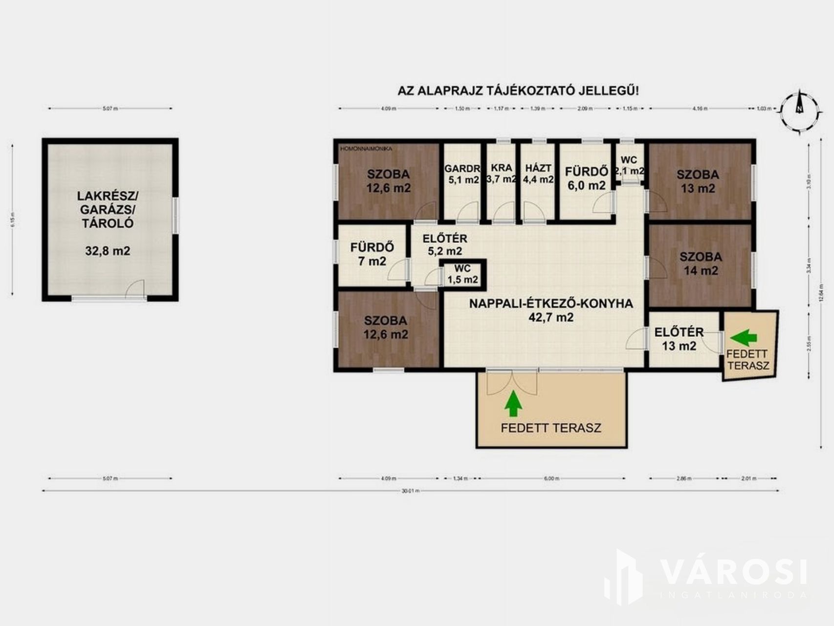 - Lakótér: 136 m² + melléképület/vendégház: 33 m2