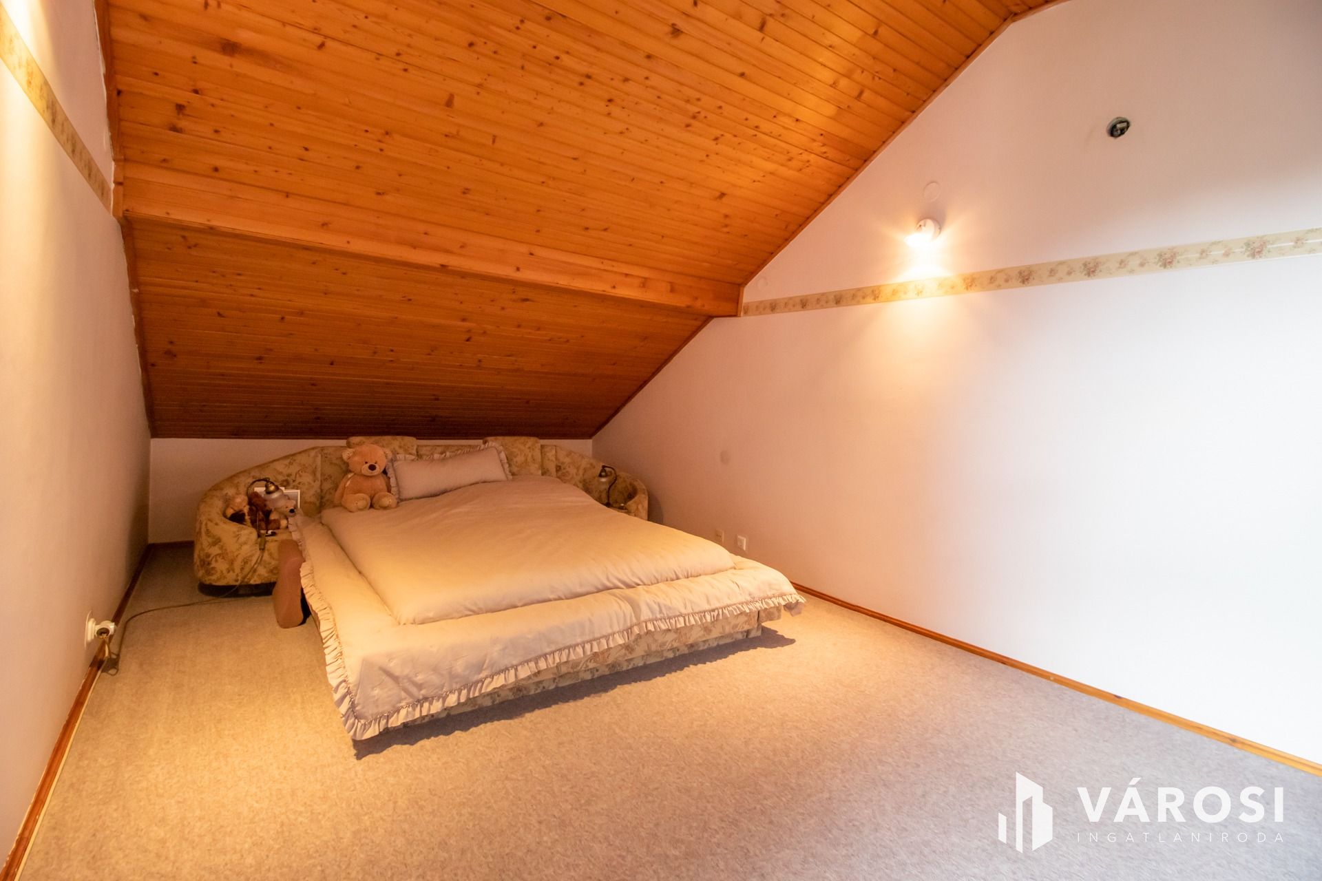 A tágas tetőtérben, további 3 napfényes szoba egy hatalmas előtérrel és gardróbszoba, valamint egy tágas, szoba méretű fürdőszoba helyezkedik el, 95 négyzetméteren.