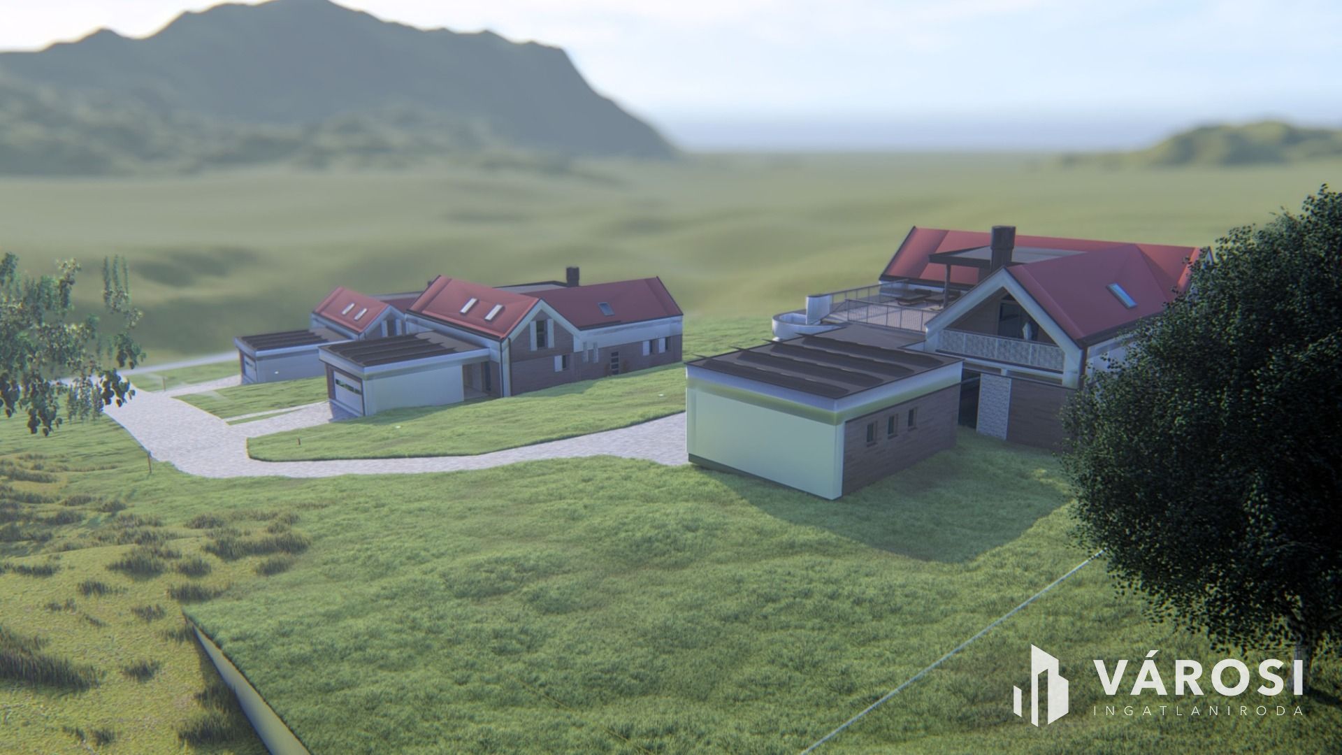 A telken szabadon elhelyezhető a ház. A képeken látható elhelyezés a látványterv része. A leendő tulajdonos elképzelései, tervei lesznek a meghatározók.