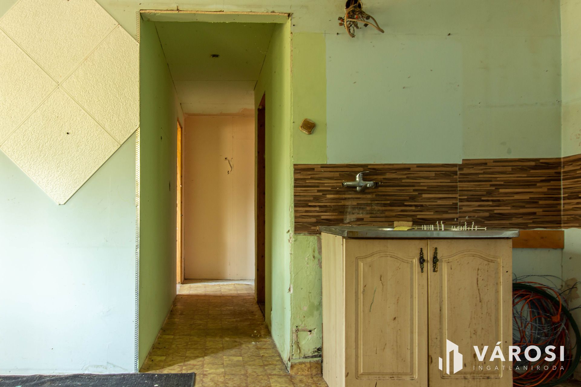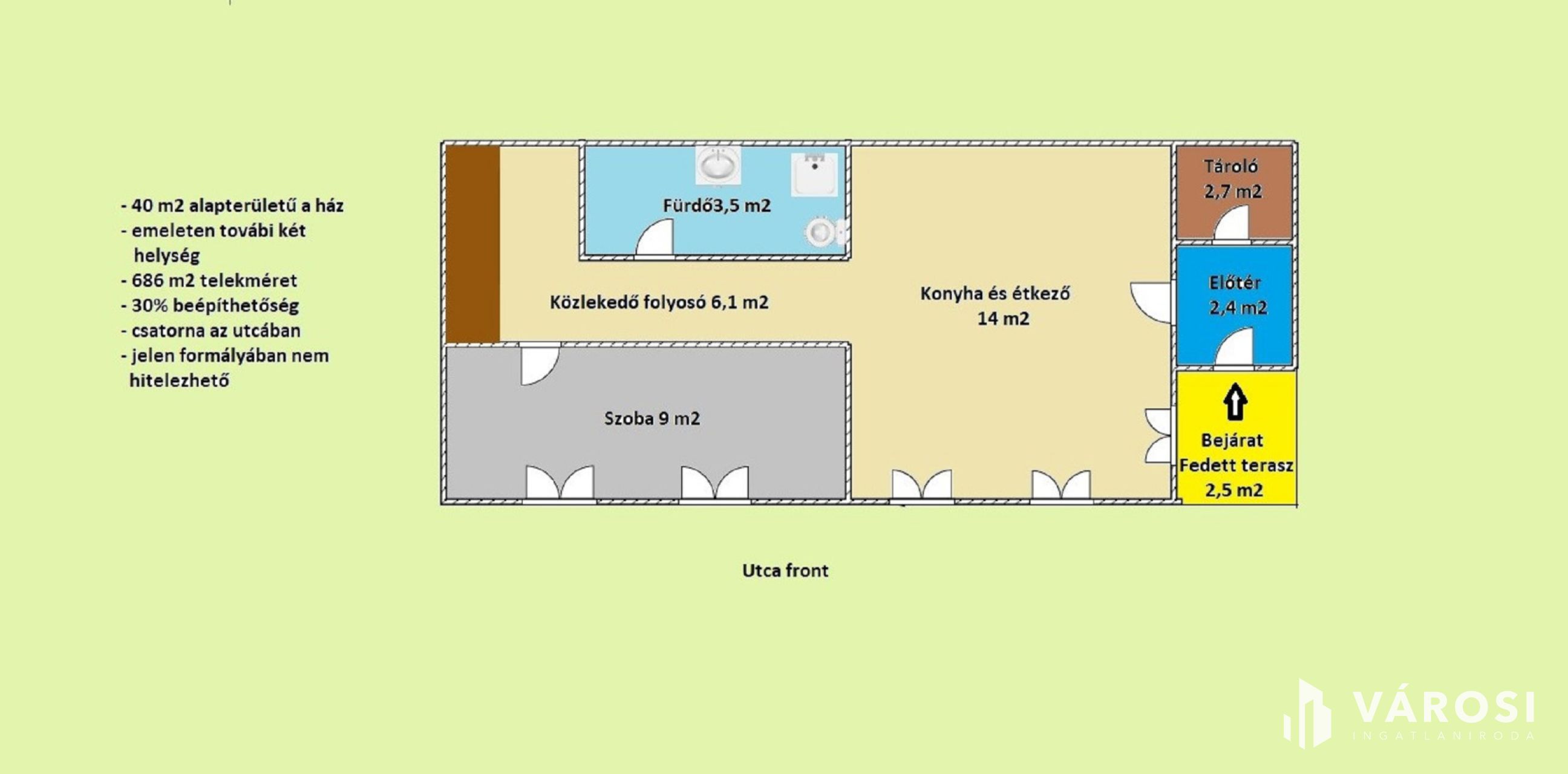 A telek teljesen körbekerített, a kerítés néhol javításra vagy cserére szorul. Víz és villany az egykori épületbe be van vezetve, a gázcsonk telken belül található, a csatorna az utcában elérhető, így az összes közmű biztosított vagy könnyen csatlakoztatható. A telken egy 1990-es években épült könnyűszerkezetes ház áll, amely inkább bontandónak tekinthető, azonban az alap jó kiindulópontot jelenthet egy új építés számára. Fontos megjegyezni, hogy az épület nincs feltüntetve a térképvázlaton, így jelen formájában nem hitelezhető, ezért elsősorban készpénzes vásárlók jelentkezését várjuk. Az ingatlan per- és tehermentes, egyetlen tulajdonostól eladó, azonnali birtokba adással.
