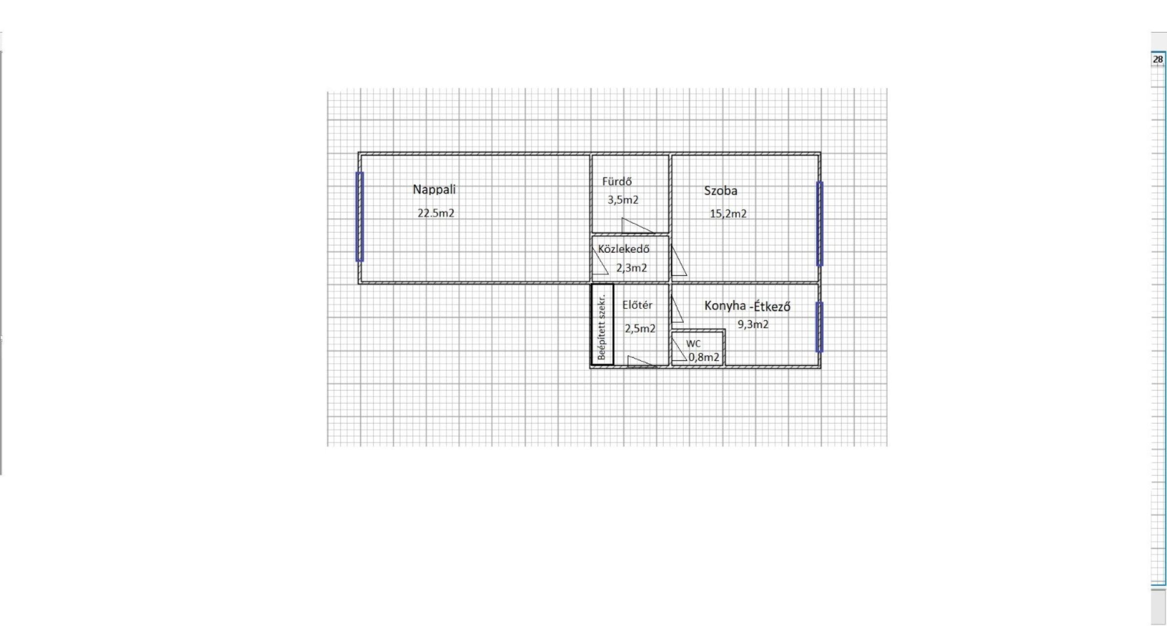 A déli tájolású nappali egész nap világos (és klímás), a másik szoba északi, így nyáron is kellemesen hűvös. Sarokkád, külön WC, közös tároló és kerékpártároló a házban.