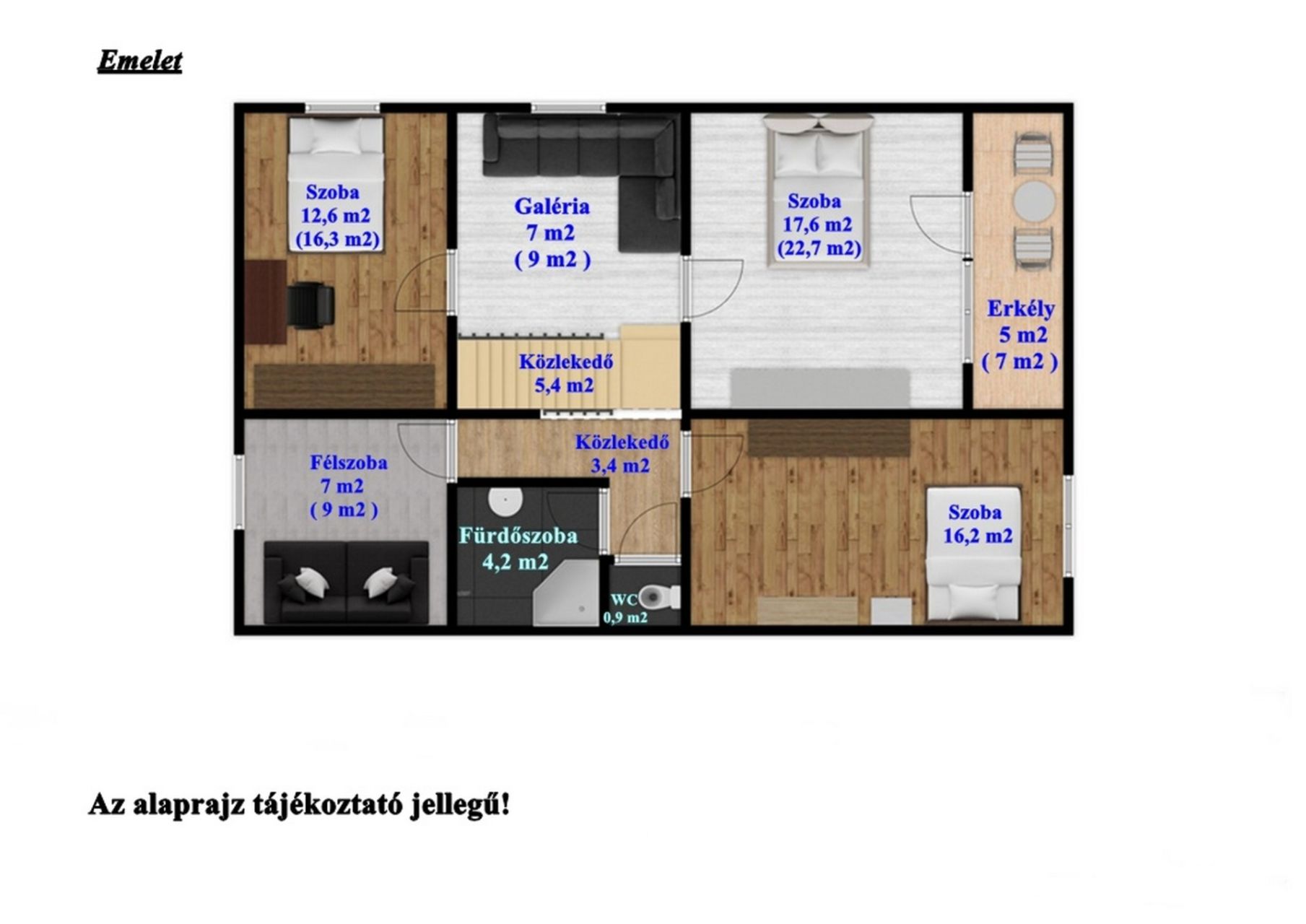 - Galéria a felső szinten, amely nappaliként is funkcionálhat.