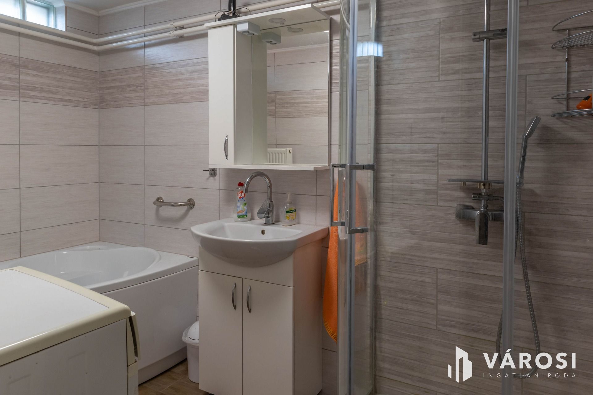 - Két szint, két fürdőszoba – az alsó szinten fürdőszoba káddal és tusolóval, beépített padlófűtés modullal, az emeleten pedig modern tusoló új bojlerrel.