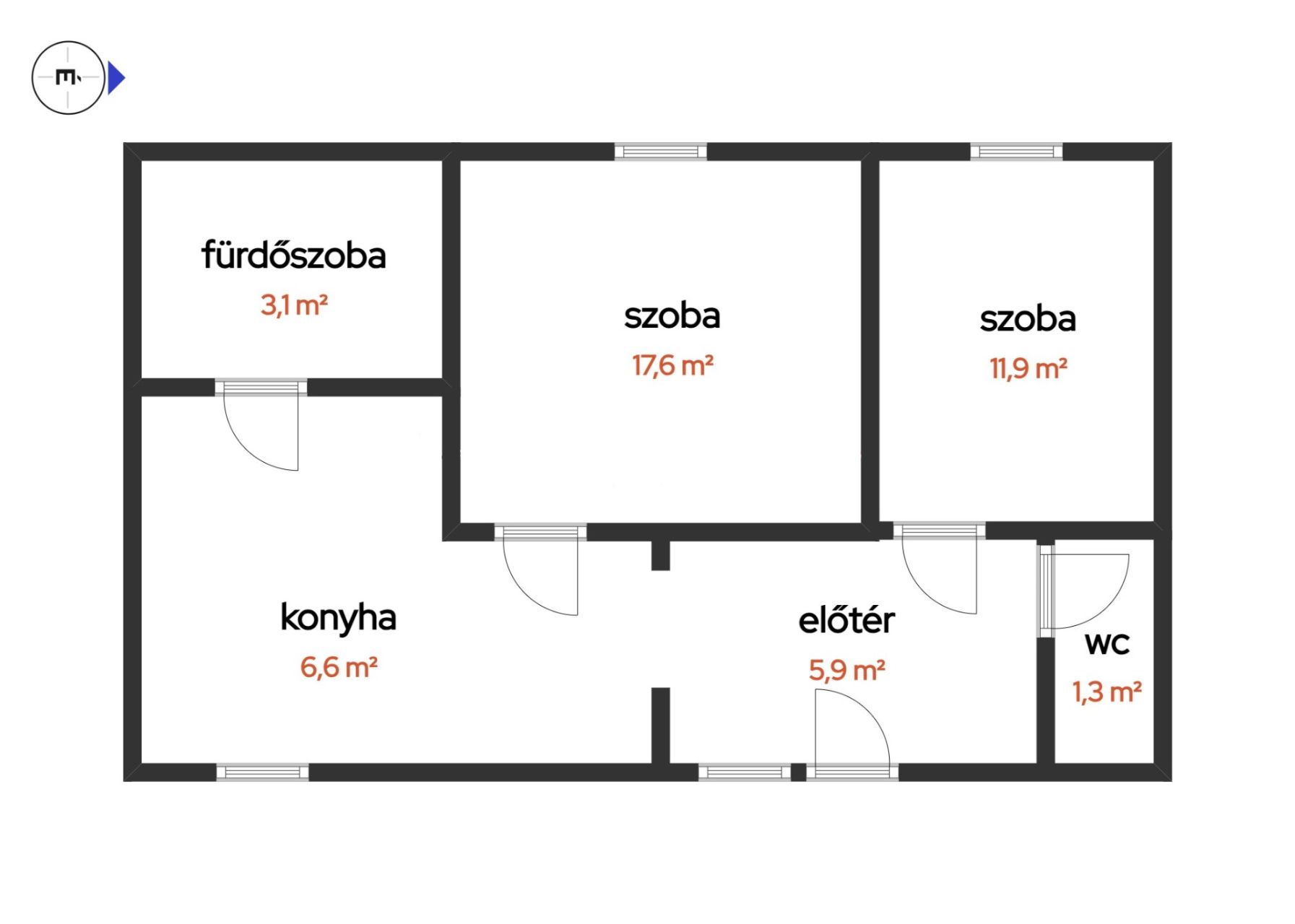 Lakótér: 45 m²