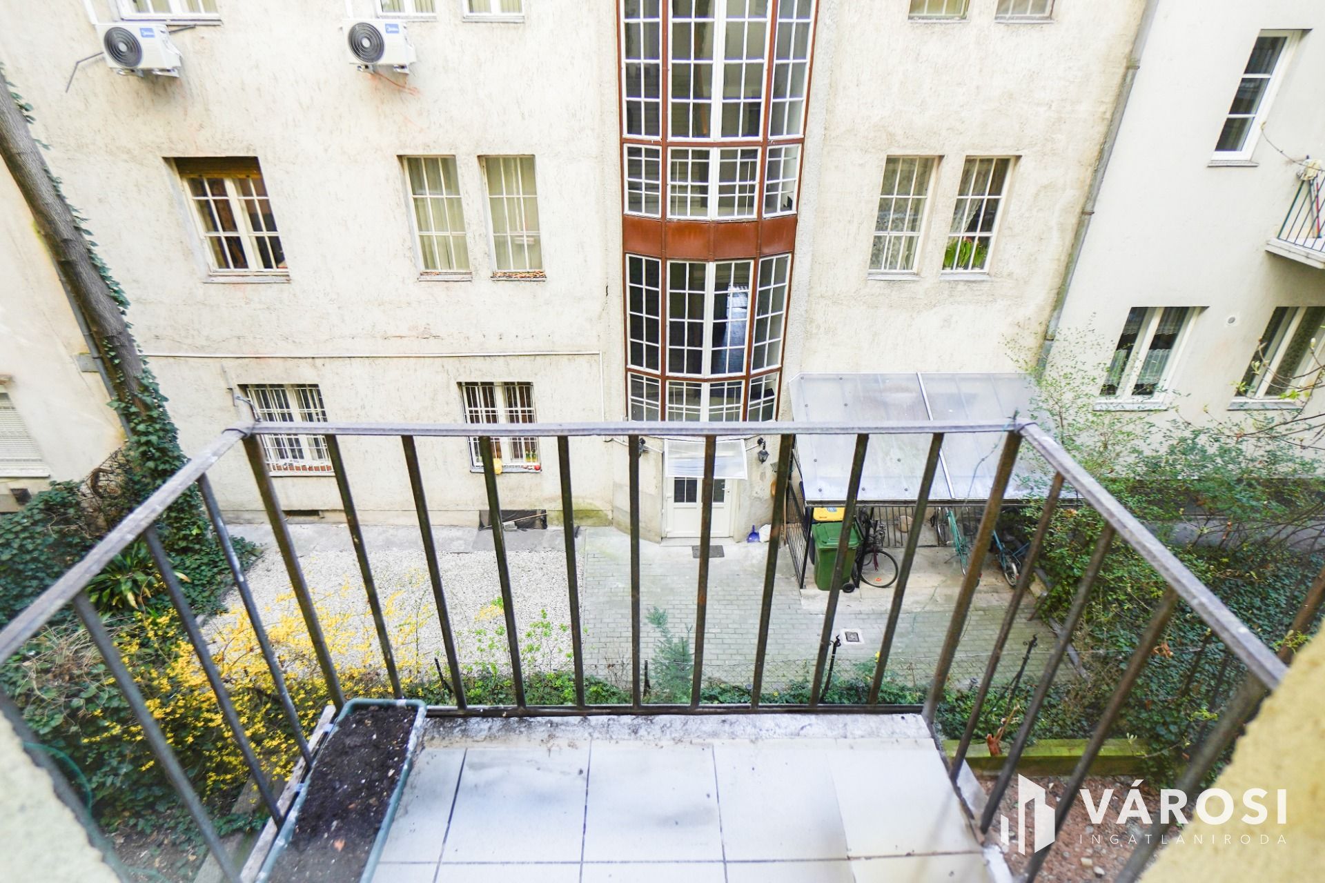 A lakás két erkéllyel is rendelkezik melyekből az egyik a Dunára és a Margitszigetre tekint igazi dunai panorámát biztosítva. Belső udvarra tekint a belső szoba erkélye.